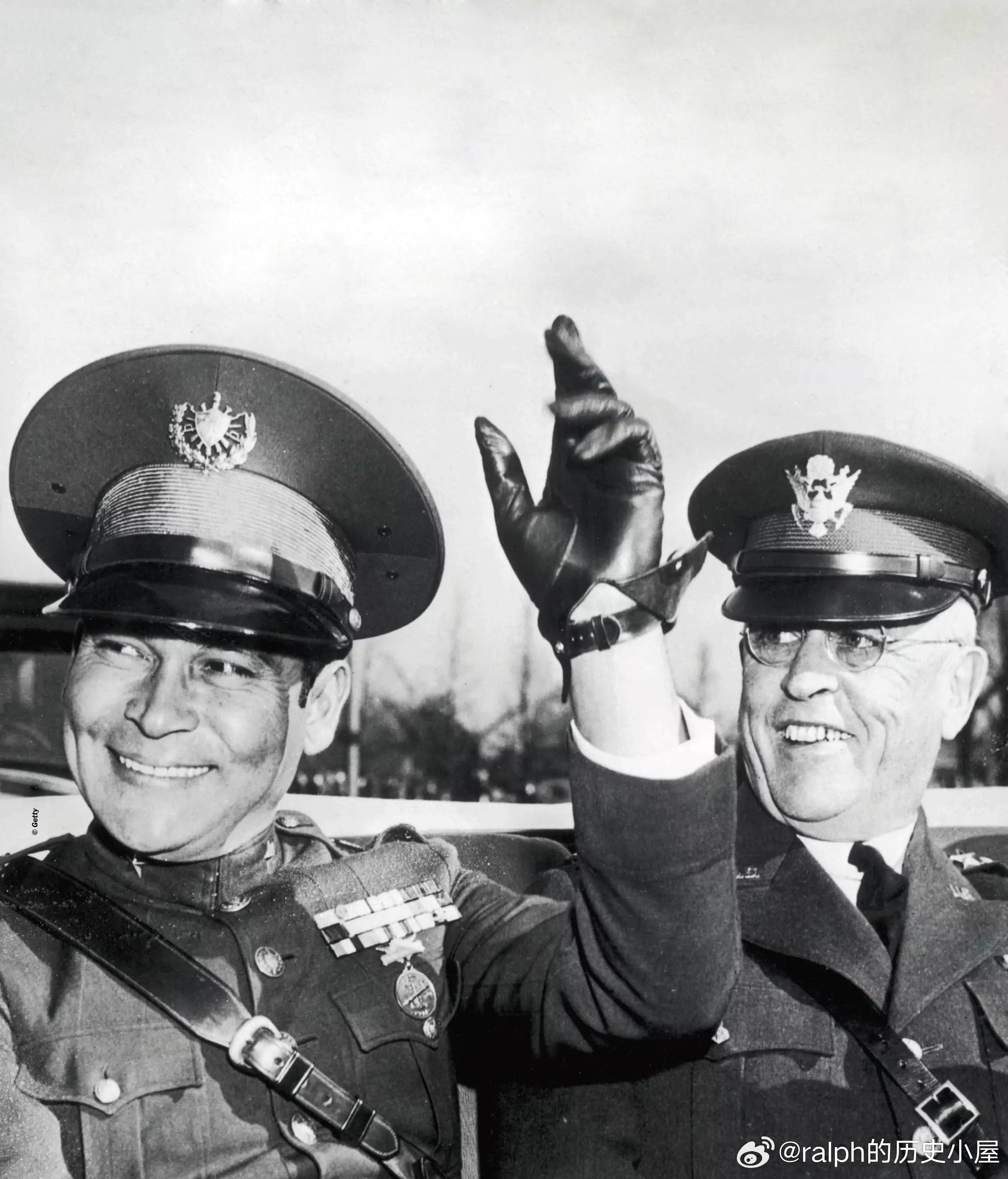 1938年11月11日古巴总统Fulgencio Batista富尔亨西奥·巴蒂斯塔(1901.1.16-1973.8.6,左)与美国陆军参谋长Malin Craig克雷格(1875.8.5-1945.7.25)一起参加停战日阅兵式历史影像