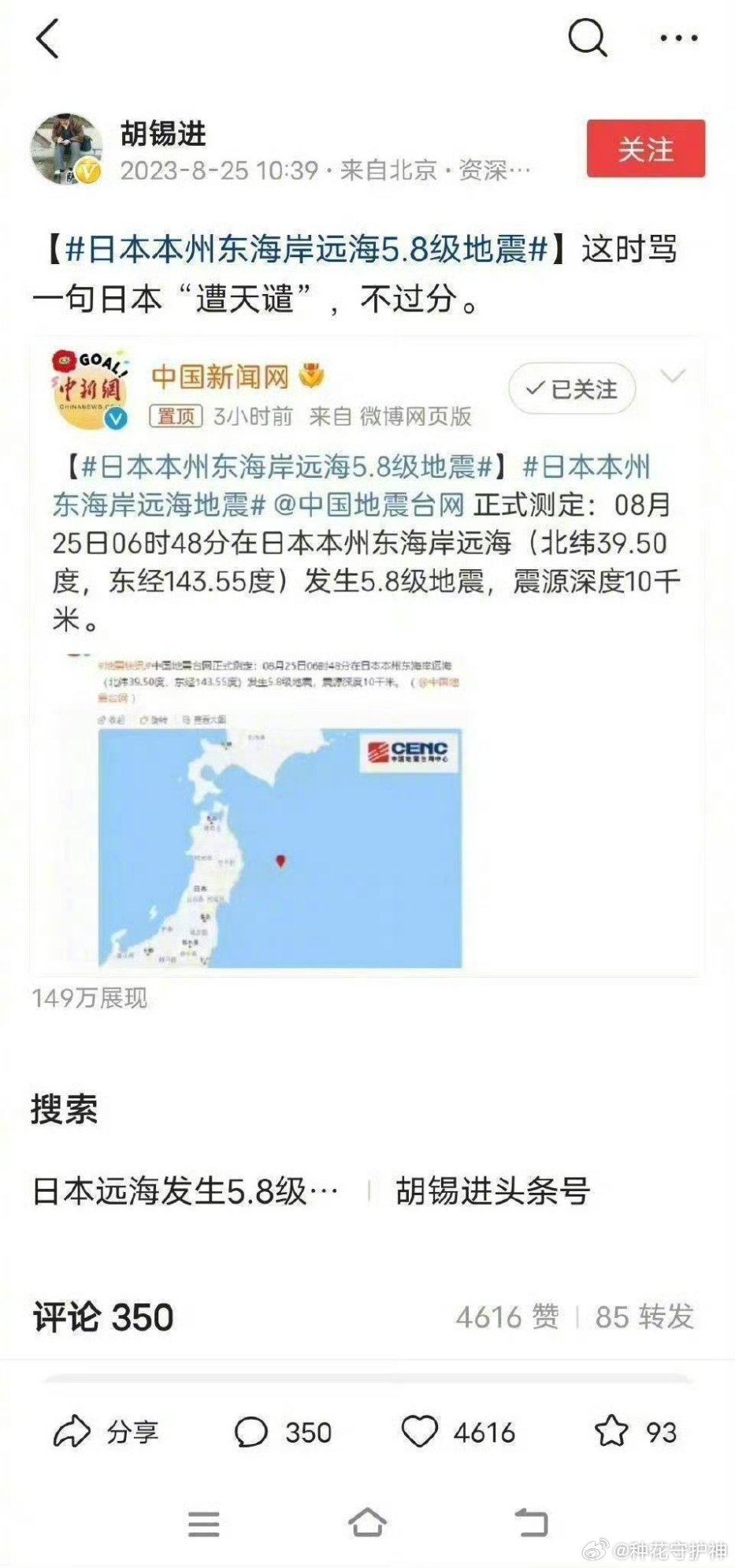 日本地震东京震感强烈胡锡进:遭天谴,不过分!胡锡进:不能那样做!