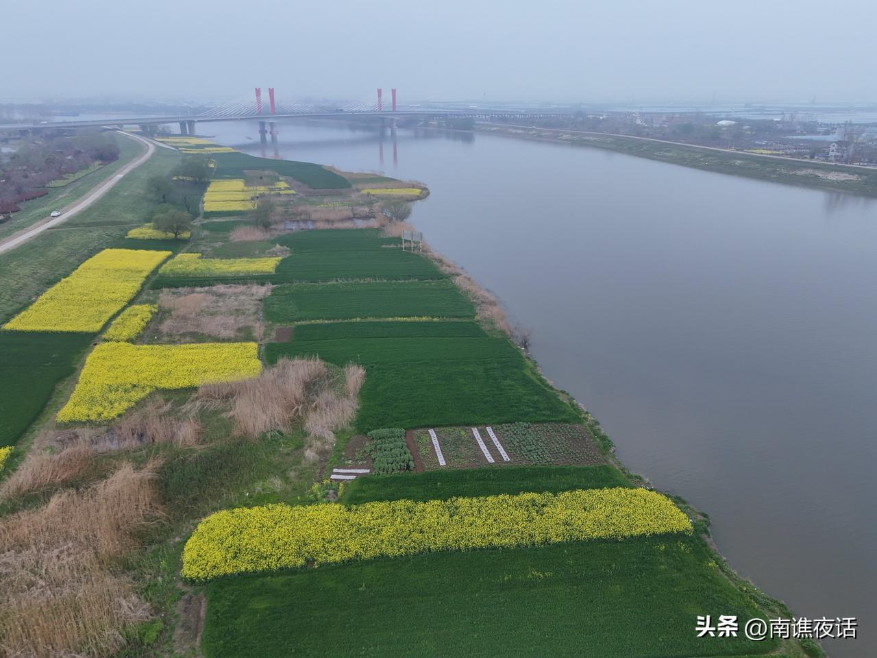 今天天气不错,我驱车来到涡河八桥下面,这里的风景真的无敌,金灿灿的油菜花和碧绿的麦苗,涡河两岸的原生态风光真是太美了!河堤路油菜花田 涡口美景