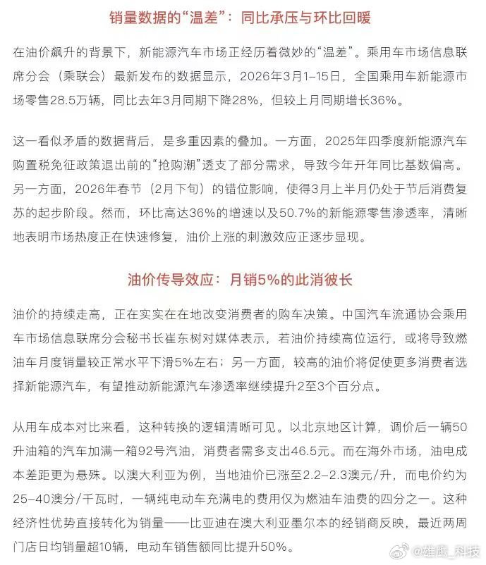 新一代小米SU7首周交付破七千、累计锁单超三万,轿跑领域单周销量赶超多数车型月销,四月冲2万+在望,Model3的短暂领先恐将落幕。3月新SU7备产1.6万台,虽占用部分产能精力,却也是车企推重磅新车的常规操作,以此唱衰YU7为时尚早——作为连续7个月中大型SUV销冠,YU7仍居新能源SUV销量前列,提车需7-10周,订单充足热度不减。在26年车市“地狱难度”开局下,新能源市场整体大跌27.5%,而小米却逆市增长27%,堪称优等生。乘联会预测高油价将推动新能源车渗透率提升2-3个百分点,叠加全球电动化浪潮,小米汽车的爆发,或许才刚刚开始。新一代SU7累计交付超7000台