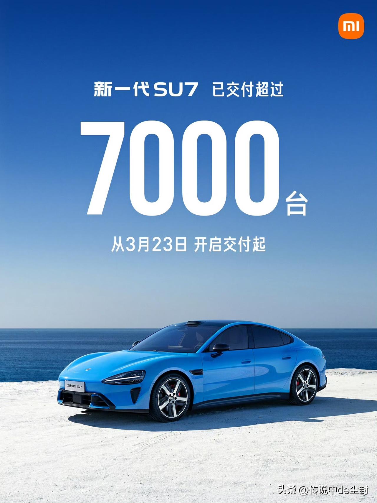 来了。 小米汽车3月销量战报公布。 3月交付超过20000台,其中,新一代SU7交付超7000台。 新一代SU7的交付速度有够快的…… 这样算下来,YU7在3月份的销量应该就是一万多了。 好像相较于小米以往的销量成绩,3月20000+的成绩不算特别亮眼。 你觉着呢?