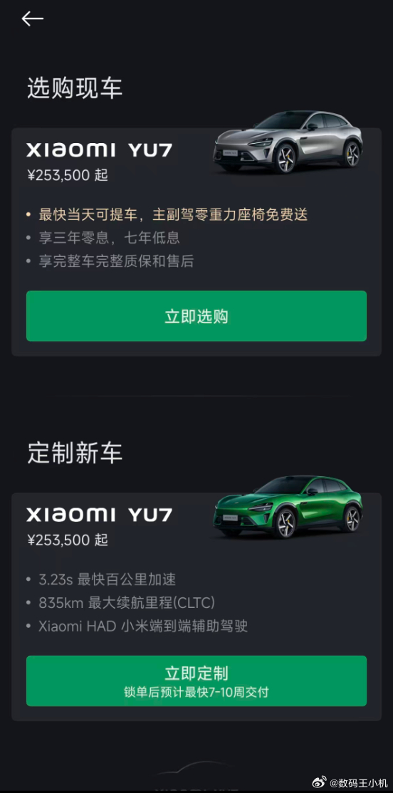 新SU7成绩亮眼,首周交付七千,整体破两万,3月23日锁单达3万,按此速度,4月销量值得期待,有望重回销量宝座,虽3月备产超1.6万台占据产能,影响YU7生产,但YU7热度稳定、订单充足,1 - 2月累计销量居新能源SUV前二,连续7个月中大型SUV销冠,定新车仍需7 - 10周提车。