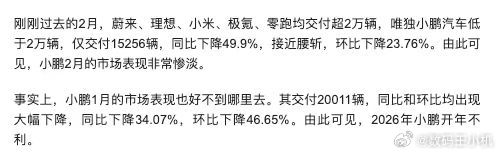 新一代SU7累计交付超7000台2026年车市开局艰难,国补退坡、需求提前释放,2月新能源市场同比大跌27.5%,众多车企销量下滑,而我米却同比增长27%,堪称优等生了吧。