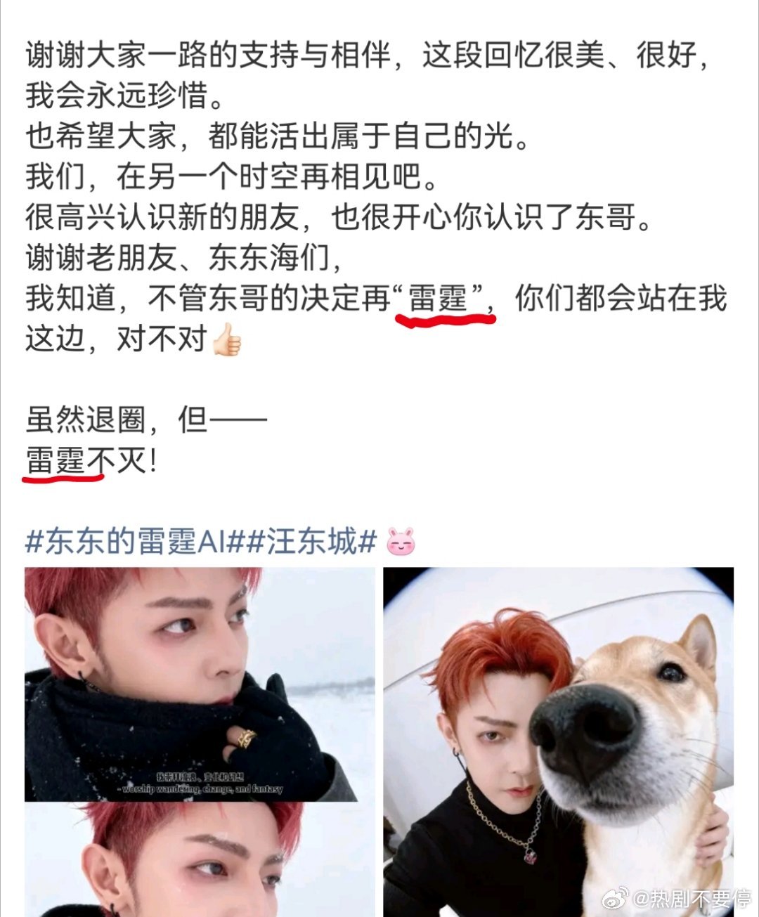 汪东城愚人节退圈只有我磕到了“东婷”吗汪东城的退圈文案里全是『雷霆』!!!