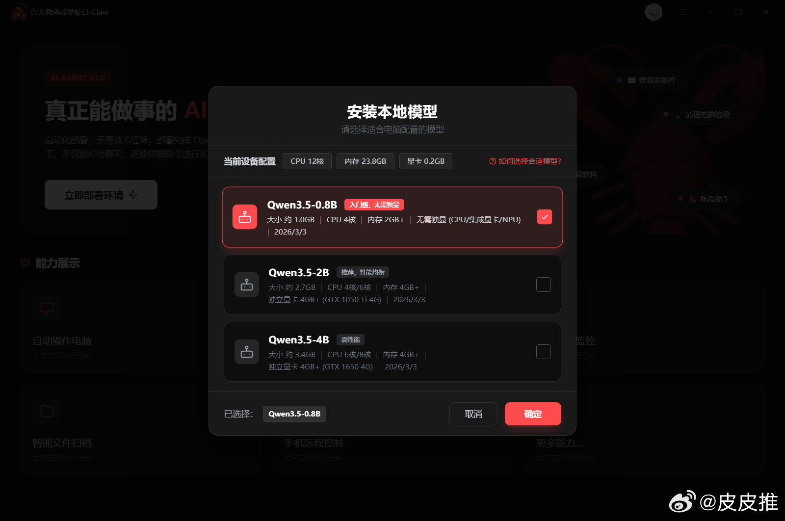 很多本地模型部署起来极其繁琐,但 LFClaw 真正做到了 10 分钟极速安装。它把复杂的大模型本地化,变成了一个类似 QQ 安装包的东西。即便你是完全不懂技术的小白,也能在自己电脑上跑起一个支持“导演模式”的写作助手。