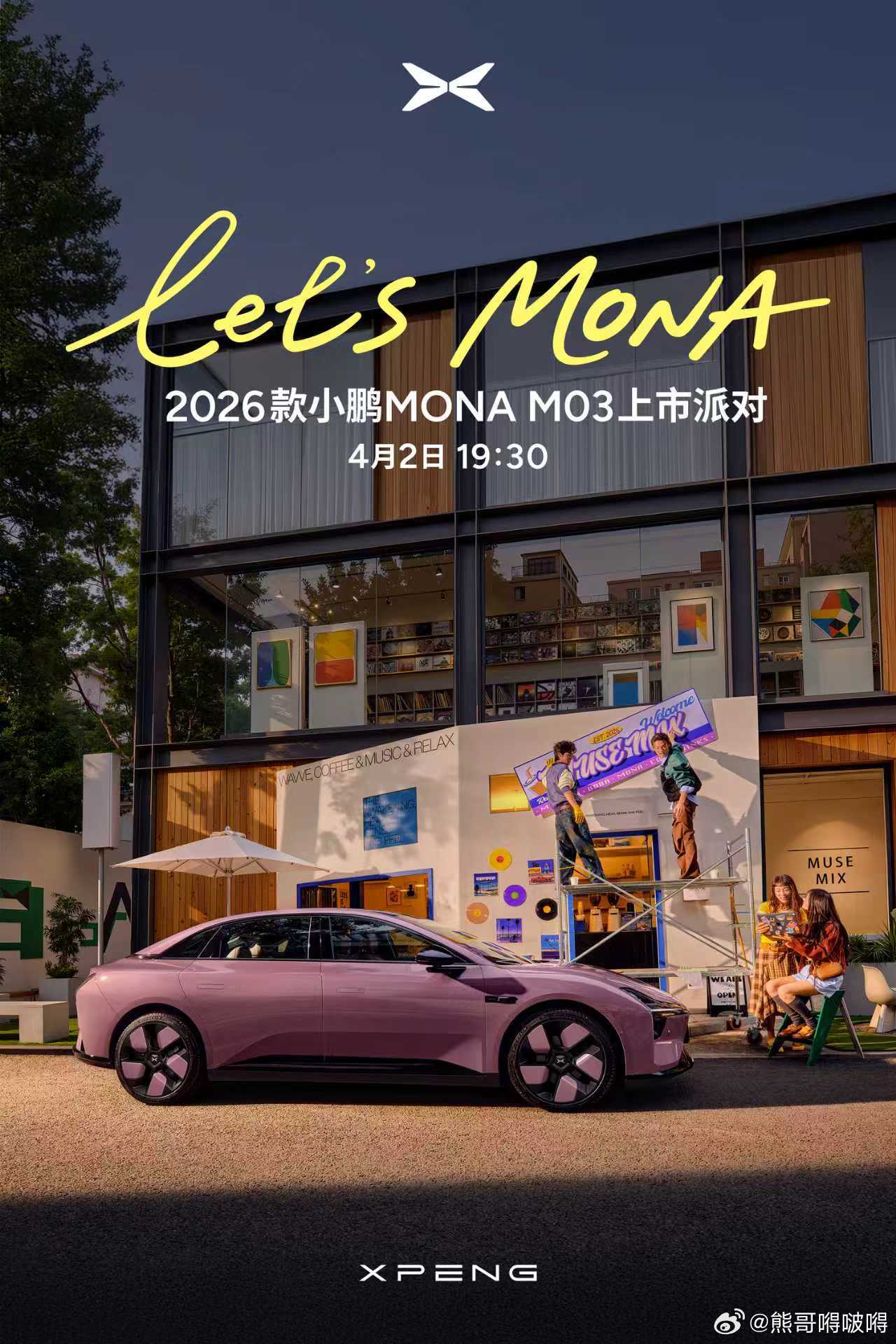 倒计时1天!2026款小鹏MONA M03上市派对明天19:30正式开启,Let’s MONA!本次新车重磅亮相全新「樱珞粉」主题套装,色调柔雾温柔、清透高级,像把春日晚霞装进车身,专属车漆搭配19英寸定制轮毂、气宇灰内饰+车身同色粉色缝线,座椅升级Nappa真皮,精致百搭,这也是小鹏MONA首次推出主题套装。特邀小鹏MONA车主倾情助阵,敬请锁定明天直播!欧阳娜娜粉上新款小鹏MONA2026款小鹏MONA樱珞粉亮相