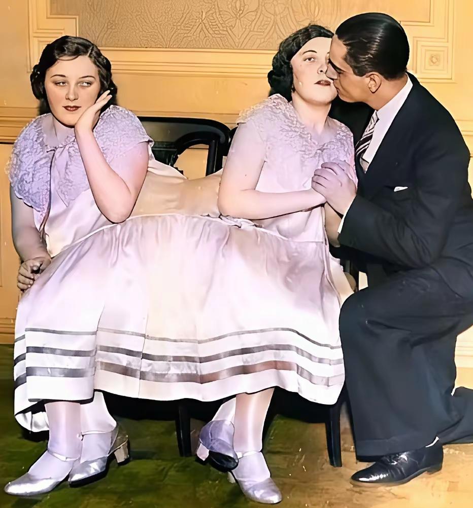 上世纪四十年代的美国一对连体姐妹。多么好的分离条件,两姐妹没有做手术。两人同生共