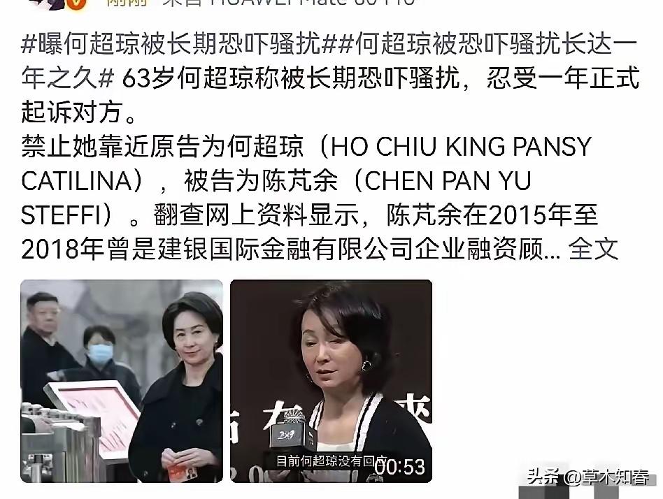 何超琼,冲上热搜! 3月31日晚上,赌王最厉害的女儿何超琼,突然冲上热搜,这次她忍不了了,直接把前证监会持牌代表陈芃余,告上了香港高等法院。 原来,从2025年3月开始,陈芃余就对她进行了长达一年的骚扰和恐吓。何超琼忍无可忍,不仅要求法院禁止对方靠近自己及美高梅、信德集团办公室30米内,还不准她以任何方式联系自己、散播诽谤言论,同时追讨损害赔偿。 很多人看到热搜,第一反应还是赌王家族的豪门八卦,但这次真的不一样。何超琼这次起诉,和争产、绯闻、商业竞争都没关系,纯粹是一个公众人物,被长期骚扰后的正常维权。 她今年63岁,是何鸿燊二房的长女。在何家众多子女里,她是公认最有能力、也最被父亲倚重的一个。赌王在世时,慢慢把信德集团、美高梅中国的大权交到她手里。赌王去世后,她更是成了整个家族的主心骨,稳住了几百亿的家业。 她的人生,从来不是靠“赌王女儿”这个标签躺赢。年轻时她在美国圣塔克拉拉大学学市场学和国际管理,没有一毕业就进家族企业。27岁那年,她自己创办天机公关公司,靠实力拿下Karl Lagerfeld、华伦天奴等国际大牌的活动,在香港公关圈站稳脚跟。 直到1995年,33岁的她才被父亲召回信德集团。当时信德亏损严重,航运业务面临激烈竞争。她接手后,大胆和中旅集团合作,创立“喷射飞航”,只用4年就把这块业务扭亏为盈。后来她执掌美高梅中国,又推动业务多元化,减少对博彩的依赖,把酒店、文旅、艺术展览做起来。 几十年下来,她早已不是依附家族的千金。她是信德集团行政主席、美高梅中国董事长,还是全国政协常委,在港澳商界、政界都有举足轻重的地位。她每天要处理大量公务,出席各种活动,还要兼顾家族事务,日程排得极满。 就是这样一个站在行业顶端的人,却从2025年3月起,被一个叫陈芃余的人持续骚扰了一年。 陈芃余也不是普通人。2015到2018年,她是建银国际的企业融资顾问,还是香港证监会的持牌代表,算是金融圈的专业人士。但2018年,她被证监会除牌,从此淡出主流金融圈。 两人没有公开的生意往来、财务纠纷,也没有家族恩怨。陈芃余的骚扰方式,包括不断打电话、发邮件,在办公室附近蹲守,还在网上散布不实言论,甚至带有恐吓内容。这种无理由的纠缠,对何超琼的工作和生活造成很大困扰。 换作一般人,被骚扰一年可能早就崩溃。何超琼一直很克制,先通过内部协调、律师发警告,希望对方停止。但陈芃余没有收敛,骚扰一直没停。 她才最终选择走法律途径。她的诉求很明确:禁止对方靠近自己和办公室30米,不准任何联系和诽谤,还要追讨赔偿。这不是豪门耍威风,是一个被侵犯边界的受害者,用法律保护自己。 这件事之所以引发这么大关注,是因为打破了很多人对豪门的想象。再成功、再强势的人,遇到无底线的骚扰,也会无奈。而何超琼的选择,也给很多被骚扰的人做了示范:不管对方是谁,不管自己什么身份,忍无可忍时,就该用法律维护自己。 目前案件还没排期开庭,陈芃余的动机还不清楚。一个前金融人士,为何执着骚扰一位和自己无交集的商界女强人,背后原因还要等后续消息。 各位读者你们怎么看?欢迎在评论区讨论。