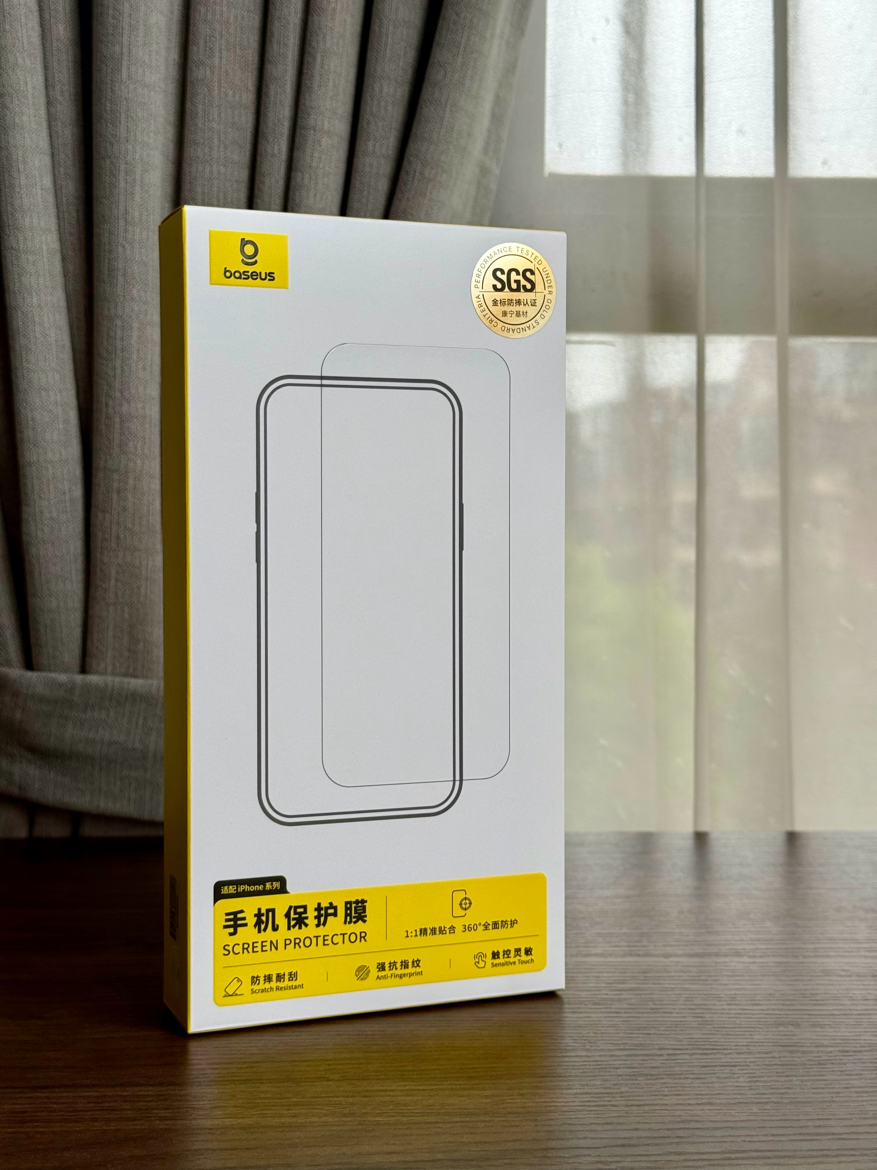 平时收到的寄拍不少,但倍思这款钢化膜确实有点东西。包装上SGS金标防摔认证很亮眼