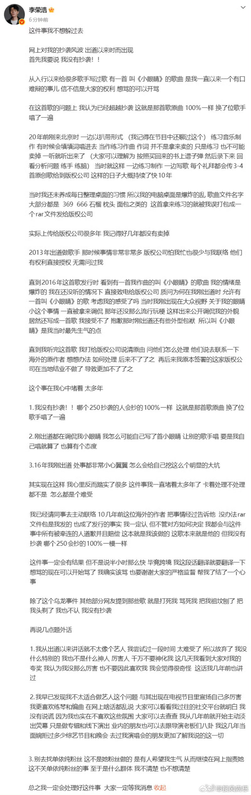 李荣浩大大方方李荣浩大大方方的态度 李荣浩否认抄袭《小眼睛》的态度,大大方方的!让人路人转粉了 李荣浩否认抄袭