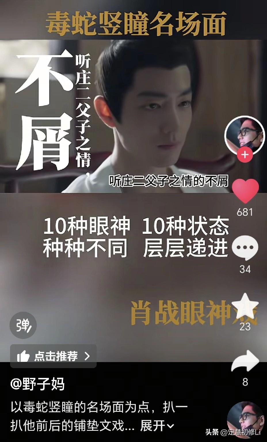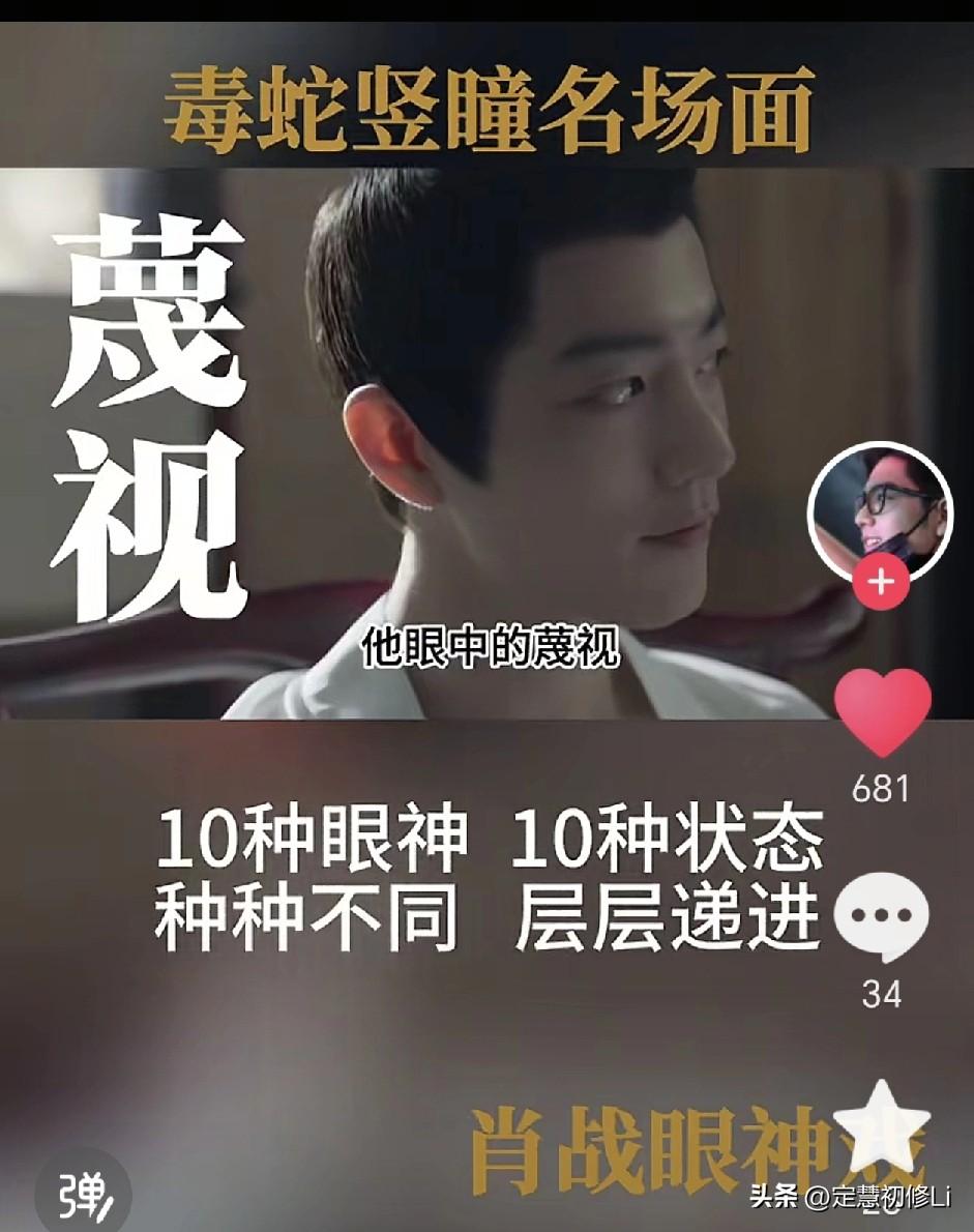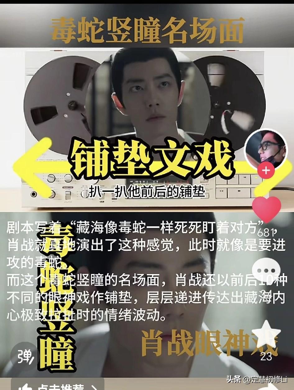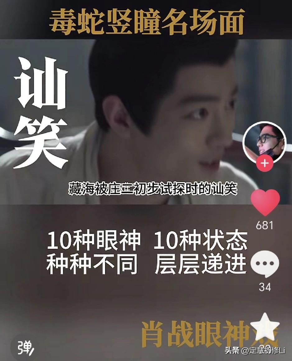 肖战这场毒蛇竖瞳名场面非常精彩,被拿出来解析也是理所当然。其实这场戏本是庄二的高光戏份,硬生生被肖战藏海细微复杂的眼神戏和微表情把观众的目光牢牢锁住了,冷静不屑高傲的藏海,起了鲨心的藏海,像一条吐着信子的美丽的毒蛇,迷人又危险