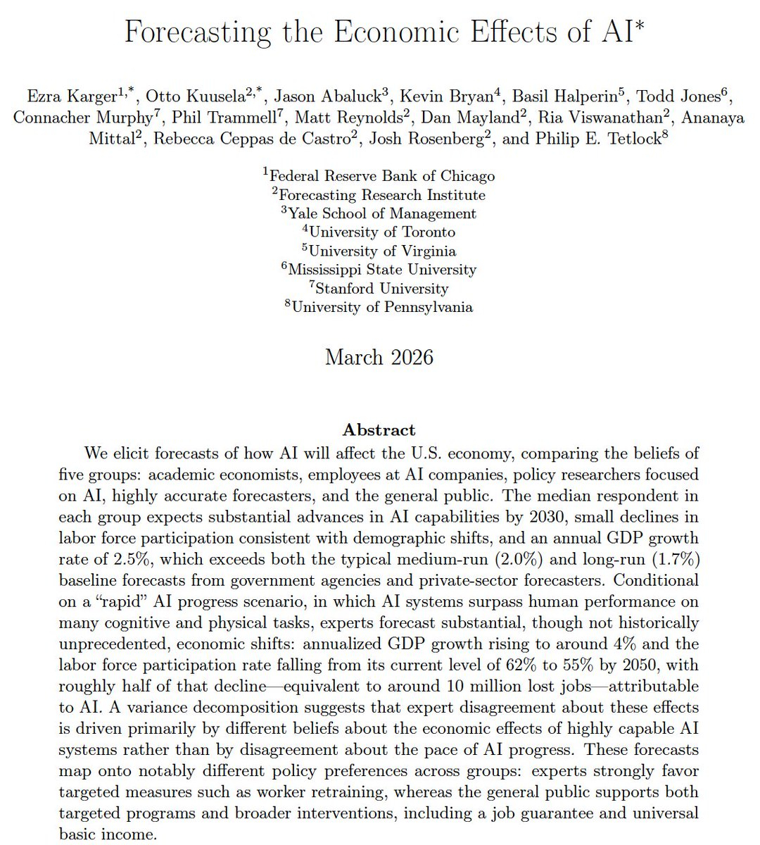 FRI,阿姆斯特丹大学,耶鲁,多伦多大学等研究人员预测了 AI 对于经济增长的帮助。
