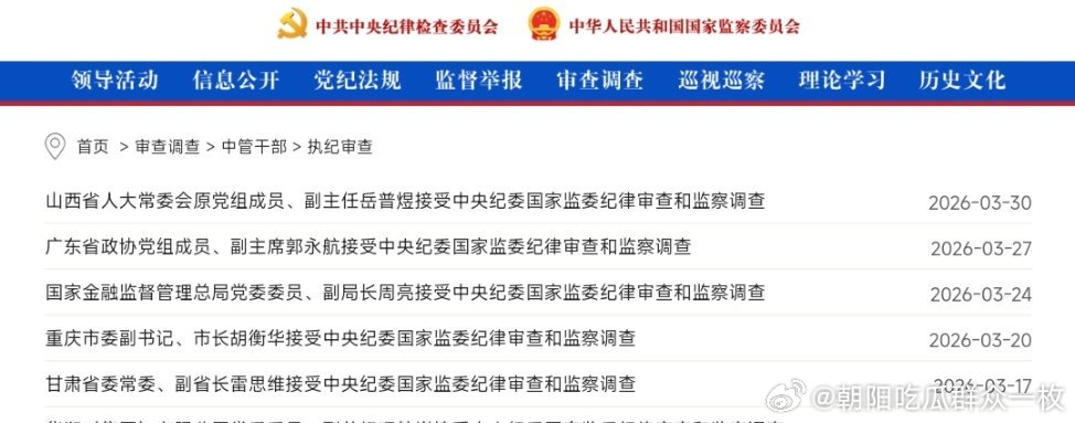 3月份5名中管干部被查,其中一位为正部级。