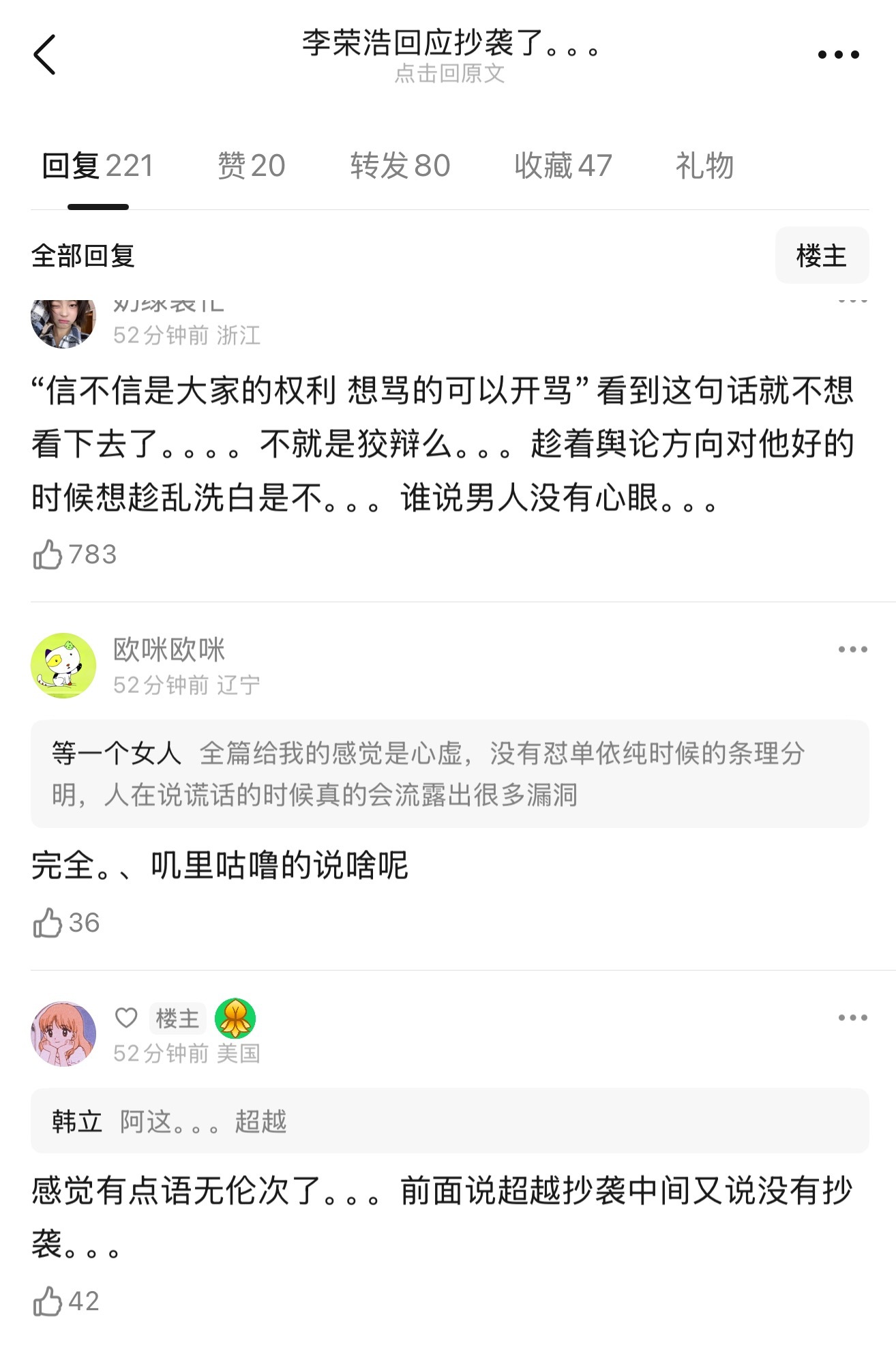 李荣浩的回应被指根本站不住脚,还有人说他在自己不占理的时候逻辑都是混乱的,也有人认为他趁着自己在单依纯这里打顺风局的时候,给自己洗白。怎么看?