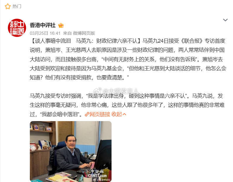 说说台北专家的粉丝、支持者看图1,中评社说马英九“财政纪律六亲不认”,跟服务自己多年的身边人萧旭岑,都可能翻脸,证明马在财务上很注意、很检点。图2是台北专家说自己扛下责任,没有咬马英九。图1图2的说法,矛盾吗?马先生对自己的身边人,都在财务上不粘锅,怎么可能给台北专家留下把柄呢?台北专家的说法,好像只差他的一份口供,就可以把马先生搞进监狱了。观众们觉得,把马搞进监狱,不需要点其它证据,金钱往来,只需要他台北专家一份口供吗?柯文哲入狱,还有挪用政治献金,收到210万的证据呢