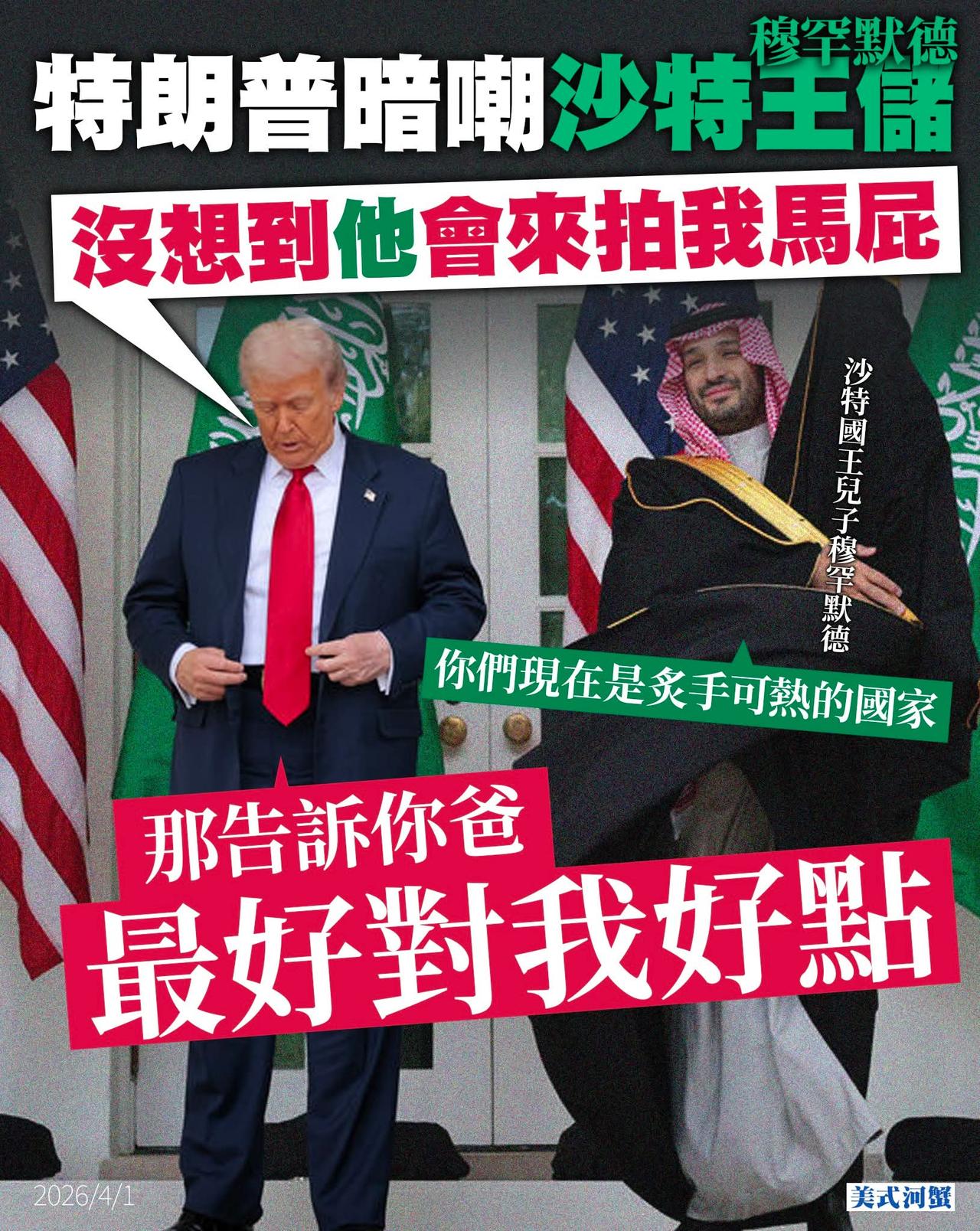 高Sir:打口炮。。。世上应该没有人可以打得过特朗普❣️ 特朗普说:美国将在未来两至三週内结束与伊朗的冲突,强调美国不须要与伊朗达成协议,就能结束战争 白宫发言人莱维特(Karoline Leavitt)在社交平台发文表示,特朗普将在周三晚(香港时间周四上午9时)就伊朗问题发表全国讲话。特朗普在白宫椭圆形办公室签署一项事关限制邮寄选票的行政命令后,回应传媒问题,他谈及中东局势,称美国会在两至三週内撤出伊朗,并指在美国离场前,有可能与伊朗达成协议,还强调伊朗「比我更想达成协议」。特朗普又补充,美国不须要与伊朗达成协议,就能结束战争,还强调「当我们觉得他们被迫回到『石器时代』,无法製造核武器时,无论我们是否达成协议,我们都会离开」。他未具体透露所谓协议的具体内容。 高Sir:「只要你不尴尬,尴尬的就是别人」,由突袭至今,一尾只有特朗普放口炮。估不到打不过后,连败走都可以包装到功成身退。真是名符其实的"尾帝"。 美对伊行动凸显内部分歧特朗普已经选好下一个战场了吗