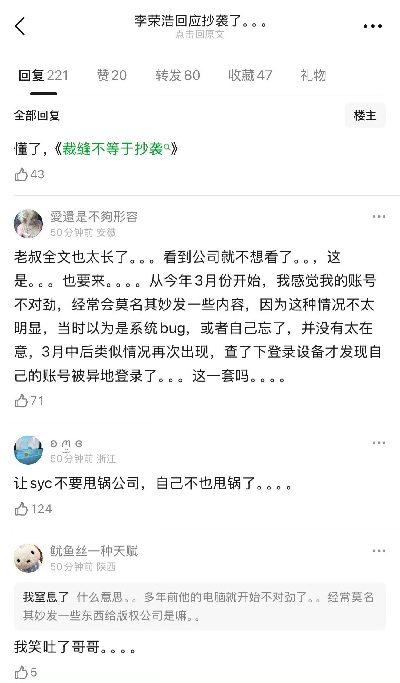 李荣浩回应十年前的抄袭“都是版权公司的错”,“我那个时候刚来北京”,“我手忙脚乱