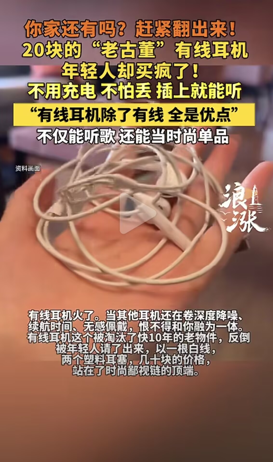有线耳机穿搭火了被吐槽土了快十年的有线耳机,居然翻红成年轻人的穿搭神器了!潮流果