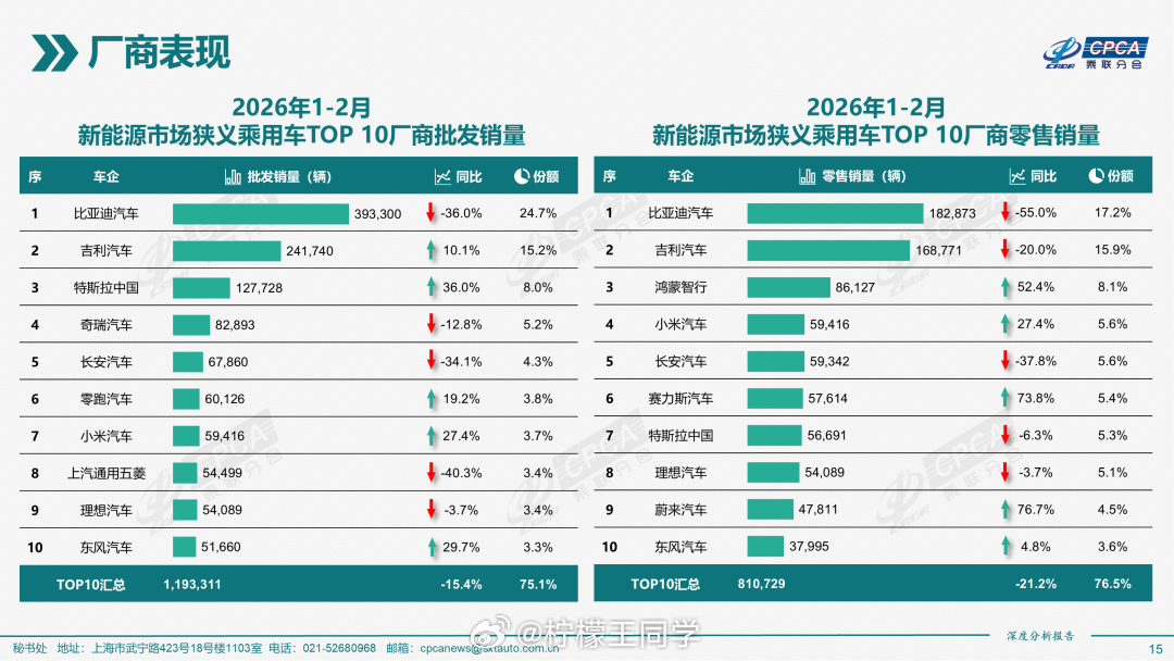 最新的乘联会数据出来了,不得不说2026年对于新能源来说,开局就是地狱级难度,在国补退坡和需求透支的双重影响下,整体市场下滑,而小米却实现了逆势增长27%新一代SU7累计交付超7000台