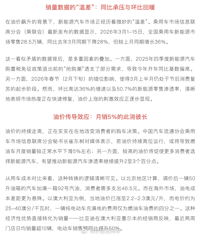油价不断上涨,科技、智能化不断进步,新能源慢慢超越传统燃油车只是时间问题,比亚迪澳大利亚经销商销量直接上涨50%,期待小米出海了