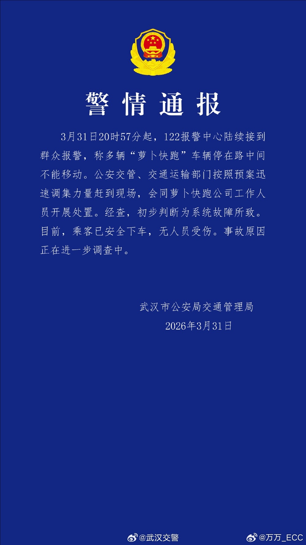 武汉昨晚萝卜快跑停在路上,说实话我一点都不意外。