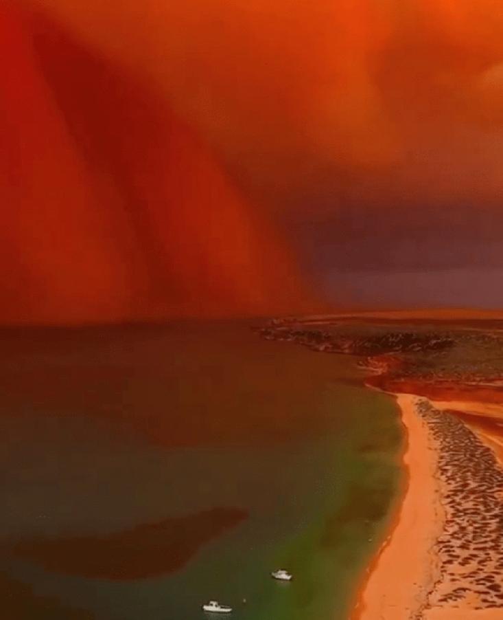 澳洲西海岸近日出现一幕震惊全球的自然异象,整片天空被染成如鲜血般的深红色,相关影片在网络疯传。这幅宛如科幻电影末日场景的画面,最早由澳洲鲨鱼湾露营车公园(Shark Bay Caravan Park)分享,随即引发网民热议。 空气充满红尘微粒 建筑车辆褪色如黑白片。 从现场拍摄的影片可见,天空呈现极不寻常的深红与橘红色调。拍摄者形容当时环境极其诡异,空气中布满灰尘。受特殊光线影响,地面上的建筑、汽车等物体在镜头下仿佛失去了原有色彩,仅剩下黑、白、灰与红色的强烈对比,视觉效果极具冲击力。 科学解释:瑞利散射与铁质红土共同作用。 针对这宗「超自然」景象,美国媒体《霍士天气》(FOX Weather)指出这纯属自然现象,与当时接近当地的热带气旋有关: 光波散射原理:当阳光需穿过较厚的大气层,或经过含有大量微粒的空气时,波长较短的蓝光会被散射殆尽,仅剩下波长较长的红光、橘光能抵达地面。 地质因素加成:澳洲西海岸拥有大量富含铁质的红土。热带气旋带来的强风将地表细微的红土扬起,这些悬浮在空中的红色尘埃进一步加剧了红光的传递与反射,令天空呈现惊人的血红色。 奇景维持48小时 留后遗症园方头痛。 虽然画面看起来令人心惊,但这场异象并不持久。鲨鱼湾露营车公园表示,约两天(48小时)后,天空已重新恢复晴朗的蓝色。然而,气旋过境后留下的后遗症仍让园方头痛——大量红色灰尘残留在园区的建筑与设施上,目前工作人员正持续进行大规模的清理作业。