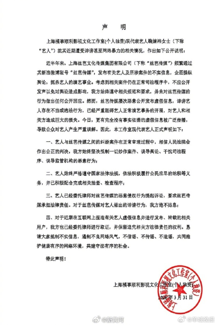 【#鞠婧祎被举报事件时间线# 】3月31日晚,国家税务总局上海市税务局稽查局的一纸通报,为持续两天的“鞠婧祎偷税漏税”举报风波画上了句号。官方明确回应:经核查,未发现举报所反映的涉税问题。这场风波背后,究竟是实名举报还是合约纠纷的延续?让我们按时间线还原事件全貌↓↓↓3月30日上午,一则指控艺人涉嫌偷税漏税内容在社交平台持续发酵。据了解,自2025年12月起,鞠婧祎超话 与丝芭传媒的经纪合约纠纷已持续数月,双方曾就合约效力、收入分配等问题多次交锋,丝芭称是鞠婧祎本人签字,鞠婧祎工作室转发鉴定机构得出的鉴定意见否认。3月31日一早,事件持续升温。鞠婧祎转发主演新剧《月鳞绮纪》宣发,并配文“我这一生被创造,被操控,但这一次我想做真正的自己”,疑似回应。午间,鞠婧祎方发布正式声明回应。声明中,鞠婧祎方表示丝芭传媒频繁发布“有关艺人及所涉案件的不实信息”,强调鞠婧祎始终“严格遵守国家法律法规”,“依法积极履行公民应尽的纳税等义务,并已积极配合完成相关抽查、检查程序”。同时,声明明确表示对丝芭传媒的“诽谤行为”“绝不姑息”。当天下午,事件出现反转。丝芭传媒发布声明,否认自己是举报主体:“我司并非举报主体。”声明中,丝芭传媒称“任何操控将祸水引向我司的作秀,其根本目的是模糊焦点,混淆视听”,并表示自身是“网络暴力的受害者”。至此,举报人身份成谜——究竟是丝芭传媒内部人员,还是另有其人?双方各执一词。3月31日晚,国家税务总局上海市税务局稽查局发布官方通报,为这场风波画上句号。通报内容如下:3月30日,我局收到关于鞠某某涉税事项的实名举报。自2025年9月起,我局多次收到类似举报线索,经认真核查,未发现举报所反映的涉税问题,并已向举报方反馈了调查结果。根据《税收违法行为检举管理办法》第十七条规定,因为本次举报是对已经查结的同一检举事项再次检举,且没有提供新的有效线索,我局依法不予受理。税务部门将持续加强税收监管,一体推进查处违法、优化执法、促进守法、保护合法,努力营造法治公平的税收环境和诚信纳税的税收生态。感谢社会各界对税收工作的关心支持!(新黄河)戳更多>>#李荣浩否认抄袭##宋宁峰回应婚内出轨##李荣浩 哪个250会抄得一模一样##宋宁峰 是我亲手把婉婷逼成那样##宋宁峰 无色无味剧毒老实人##宋宁峰无限期暂停演艺工作#(编辑:郑宗敏;审签:周乐瑞)
