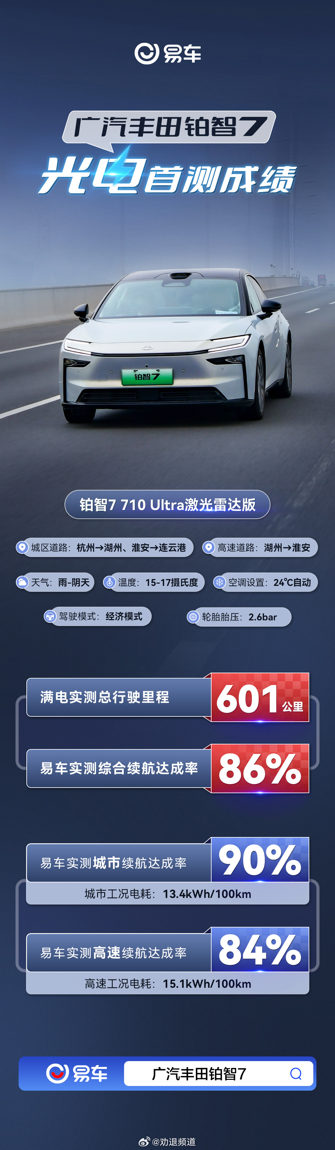 说实话,铂智7这一跑,确实让人重新认识了一件事:电车续航,不一定非得靠堆电池、拼极限。它用601公里的实测里程,86%的达成率,告诉你什么叫“稳”——城市电耗13.4、高速15.1,全程满载开空调,该跑的路一点没含糊。