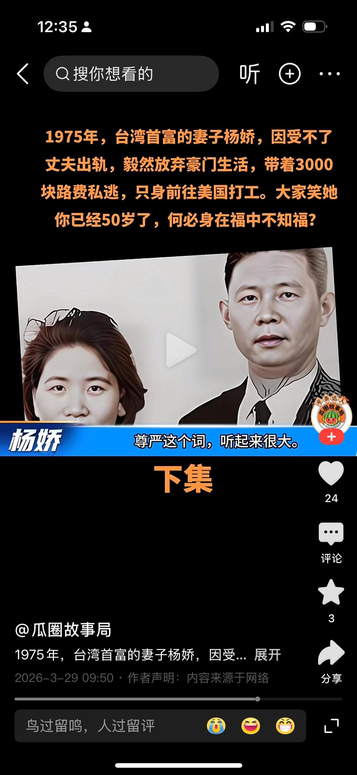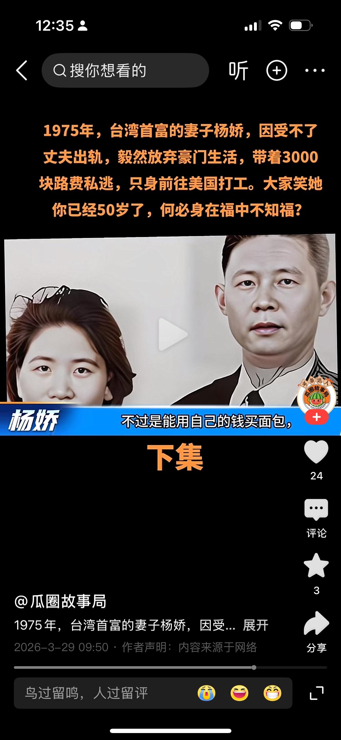 我们最嘚瑟的小三就是王石的小三和张纪中的小三,她们两个天天在网上晒什么独立女性和尊严。你们俩懂得什么叫尊严吗?我给你们两个讲一个故事,台湾首富王永庆的老婆他们从一无所有到创业成为台湾首富知道她老公出轨了,她带着3000块钱离开了首富去了美国,再也没有用王永庆一分钱。她说一个人的尊严就是能用自己的钱去买面包,能用自己的名字去签租房子的合同。