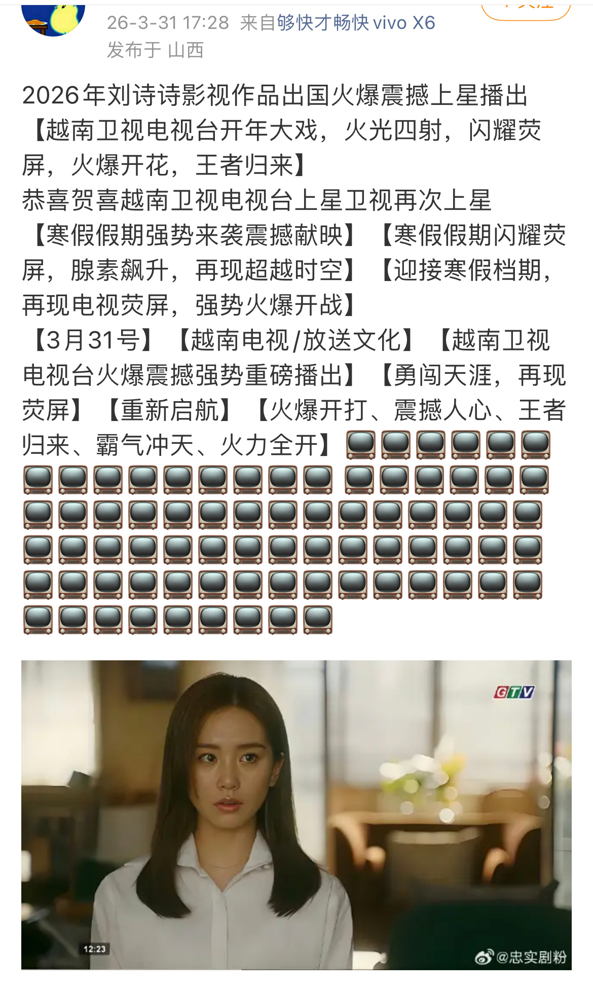 爆剧养老实锤!还是文化输出+长尾双王!刘诗诗《流金岁月》2026.3.31再度上星越南电视台,5年了热度不减,目前至少已重播186轮。蒋南孙外柔内刚、独立清醒,刘诗诗演活了当代女性标杆,真·经典角色🌟流金岁月
