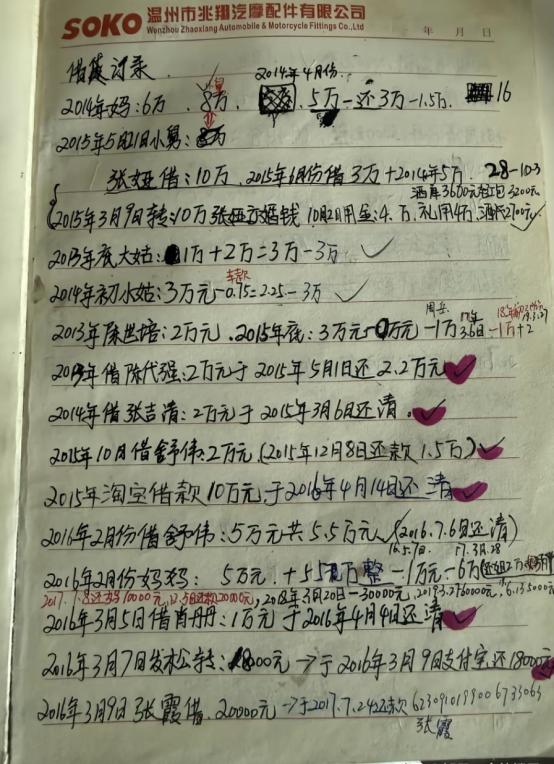 知道张雪创业很难,但没想到这么难! 张雪老婆晒出一张借款账单,从2014年开始,