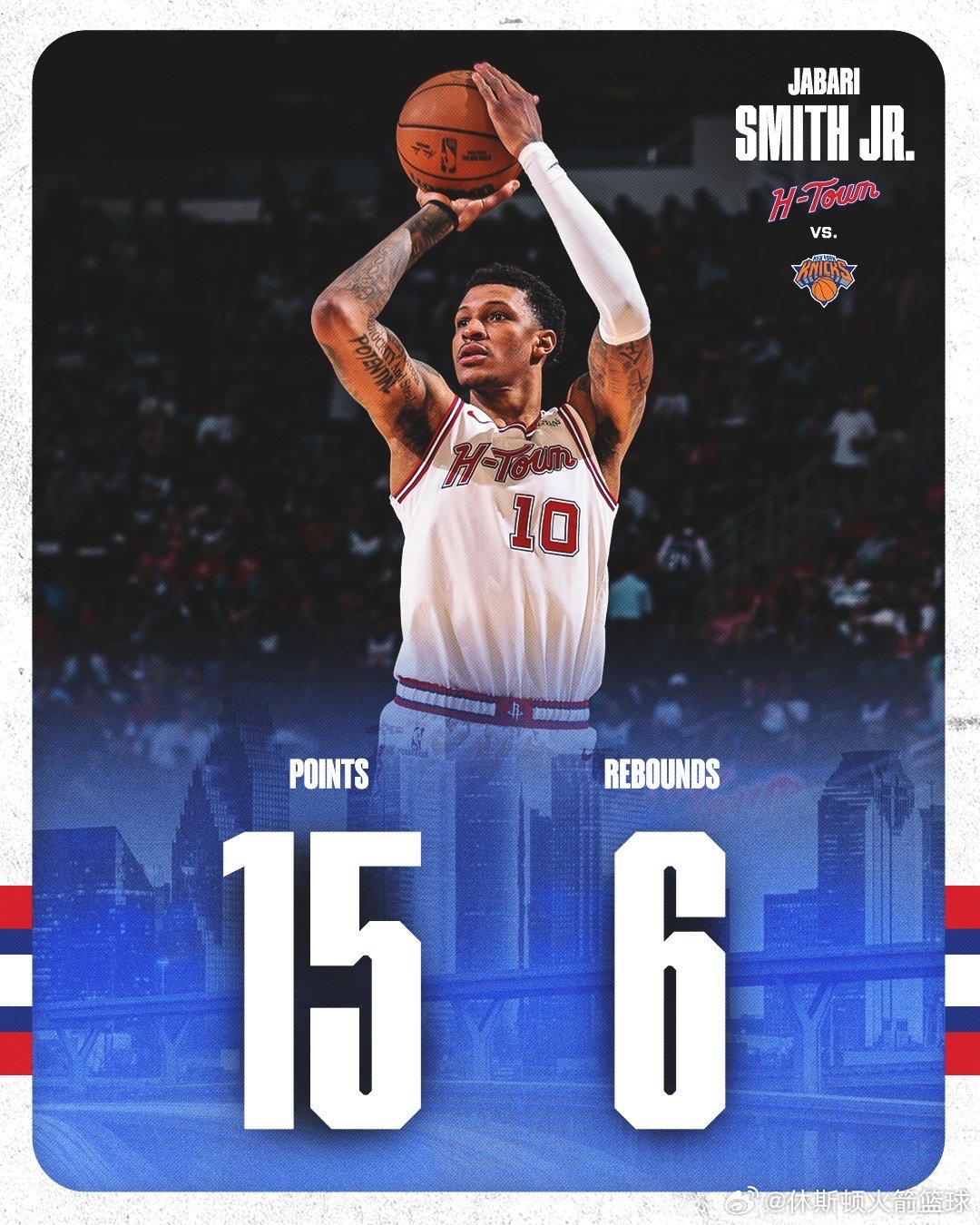 火箭今天6人得分上双,火箭官方为每人都制作了一个海报📸