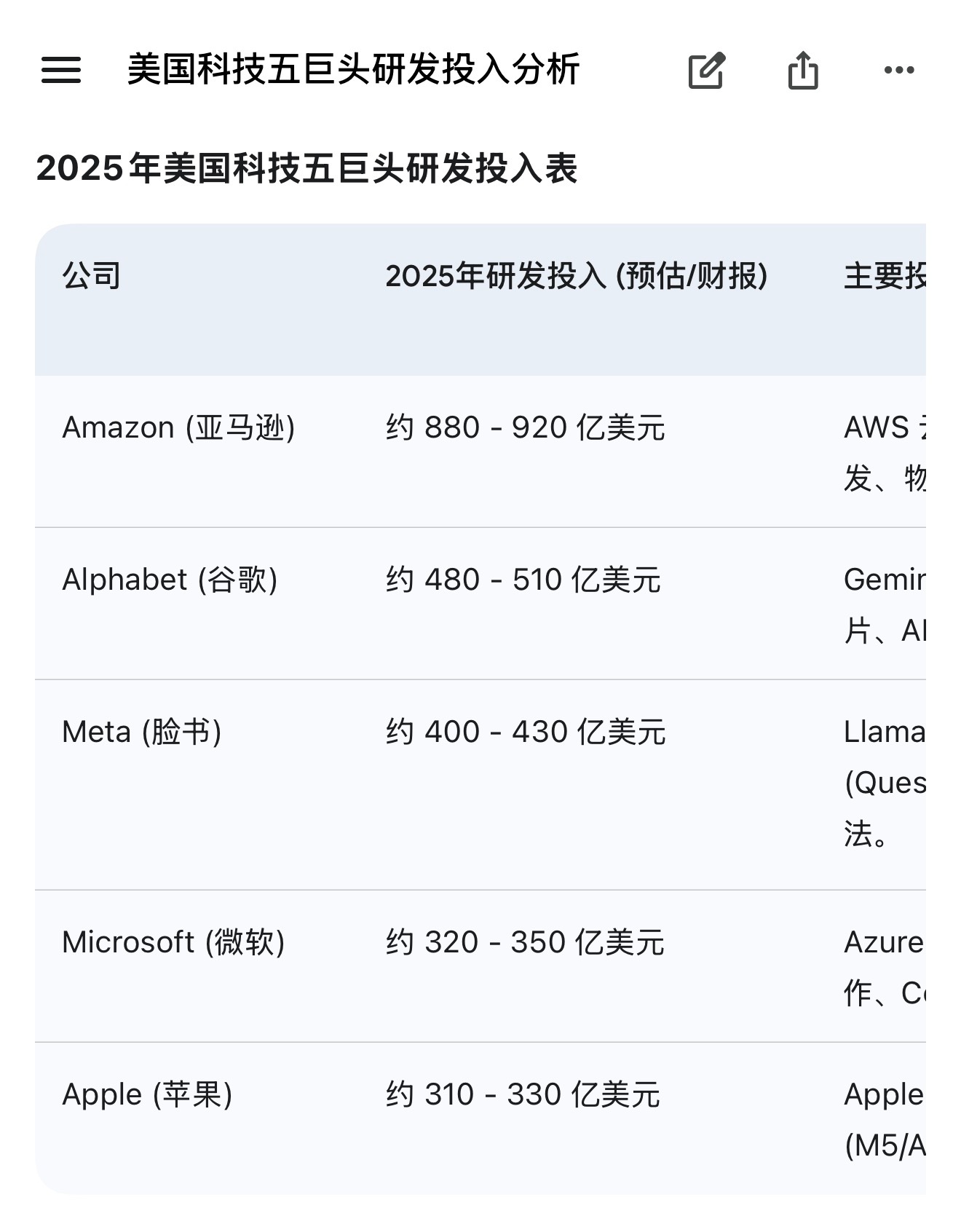 1923亿元,大约为280亿美金,2025年华为这个研发投入,在中国企业里一骑绝尘啊!查询了一下美国几个大的科技公司的投入,华为已经非常接近了。