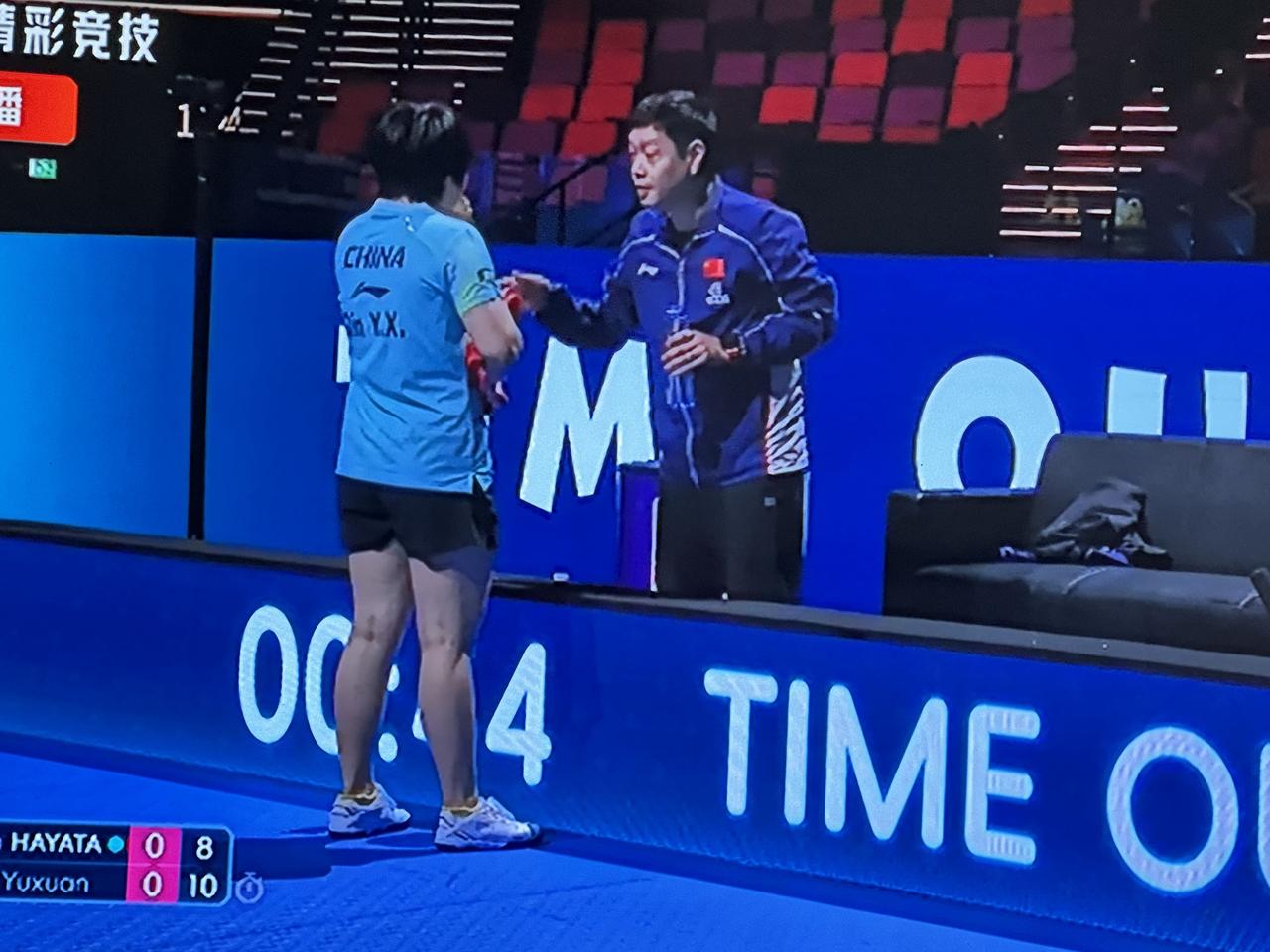 单打世界杯小组第三轮,中国队的覃予萱对阵日本队的早田希娜,本以为覃予萱会打得比较困难,没想到覃予萱开局就很顺利,面对经验丰富的早田希娜,覃予萱展开攻势,连下两局,赢得很漂亮,场上大比分很快就来到了二比零的绝对优势领先。 覃予萱的场外教练是邱贻可,每当暂停或者局间休息的时候,邱贻可都会对覃予萱进行细致地指导,覃予萱总是认真地聆听教诲。 而且,发现邱贻可对覃予萱也很关照,总是早早地拧开饮料的瓶盖递给覃予萱,当徒弟喝过饮料走向球桌时,邱贻可才把饮料瓶的盖子给拧上。此时此刻的教练,不仅仅是教练,是跟班,而且还是保姆!