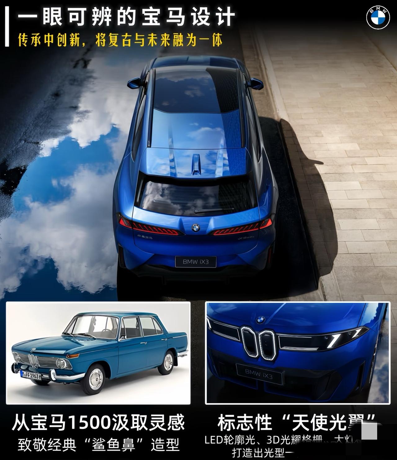 宝马新世代iX3亮相,外观帅到炸!经典双肾格栅配天使光翼灯组,一眼就能认出是宝马。续航据说能到900公里,还针对国内加长了轴距,空间妥妥的。这波操作,是不是要在纯电SUV里抢C位?