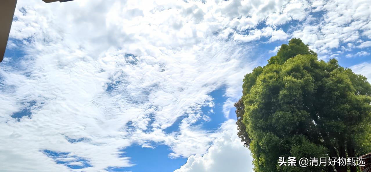 万里晴空,白云如绢,轻柔缭绕,宛若白烟飘渺。古老的樟树高耸入云,仿佛欲跃上苍穹。今日仅凭仰望这片天空,便已满足了我的视觉盛宴!