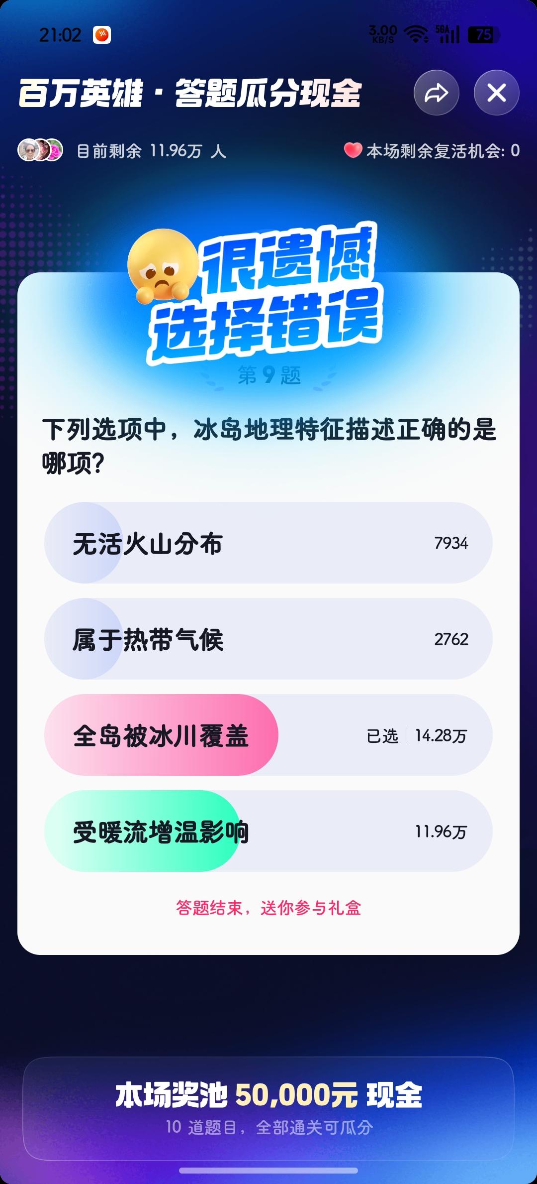分享一下这两场的题目, 现在对答题不抱任何希望, 只是第二天10点别忘了去领金币… [呲牙]