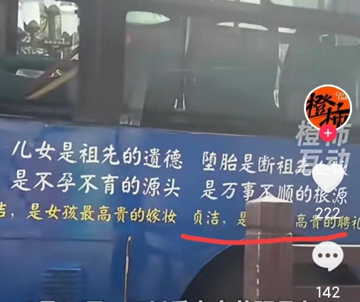 这两张图,都是那条争议公交车广告, 关于这个广告,图片和视频有很多,我发现了一个问题,所有的图片和视频,都有一根木头柱子伸出来,而这根木头柱子,盖住了两个字,这两个字是:男孩, 最后一行全文应该是:贞洁,是女孩最高贵的嫁妆,贞洁,是男孩最高贵的聘礼, 所以真相大白了,这条广告,根本不是歧视女性,根本不是封建流毒, 贞洁,指的是忠贞干净,形容女性,也形容男性,和贞节牌坊中的“贞节”不是一回事,完全是对年轻人忠于彼此的祝福话语 , 我参加过一次回民的婚礼,阿訇对新人的祝福,也有这句话,看来,这是各民族共同的期许,我实在看不出有什么问题, 故意盖住“男孩”两个字,就是故意断章取义,实在是一件可耻的事。