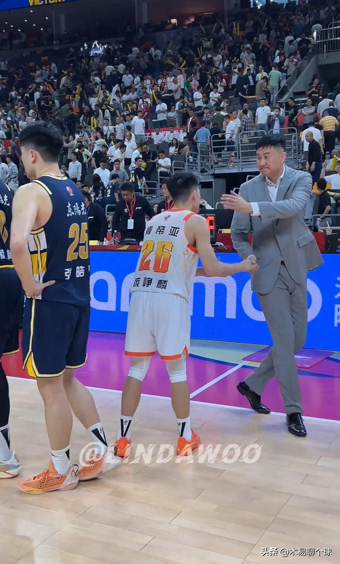 杜锋到底怎么了?别再苛责杜锋了! 3月31日晚间,广东男篮主场以101比92战胜江苏男篮。赛后,江苏男篮后场核心庞峥麟和外援都纷纷找到杜锋指导握手致意,场上虽然是对手,但是从这一幕足以证明杜锋指导在CBA联赛里的指教能力和人格魅力。包括之前洛夫顿也是特意找到杜锋指导致以敬意,更有浙江男篮在全运会比赛赛后全体球员向杜锋指导致意。这一幕幕都证明了杜锋指导的指教能力!目前广东男篮的球员阵容确实比不上巅峰时期,所以,杜锋也是无可奈何,多点包容多点理解,支持广东男篮! 广东宏远