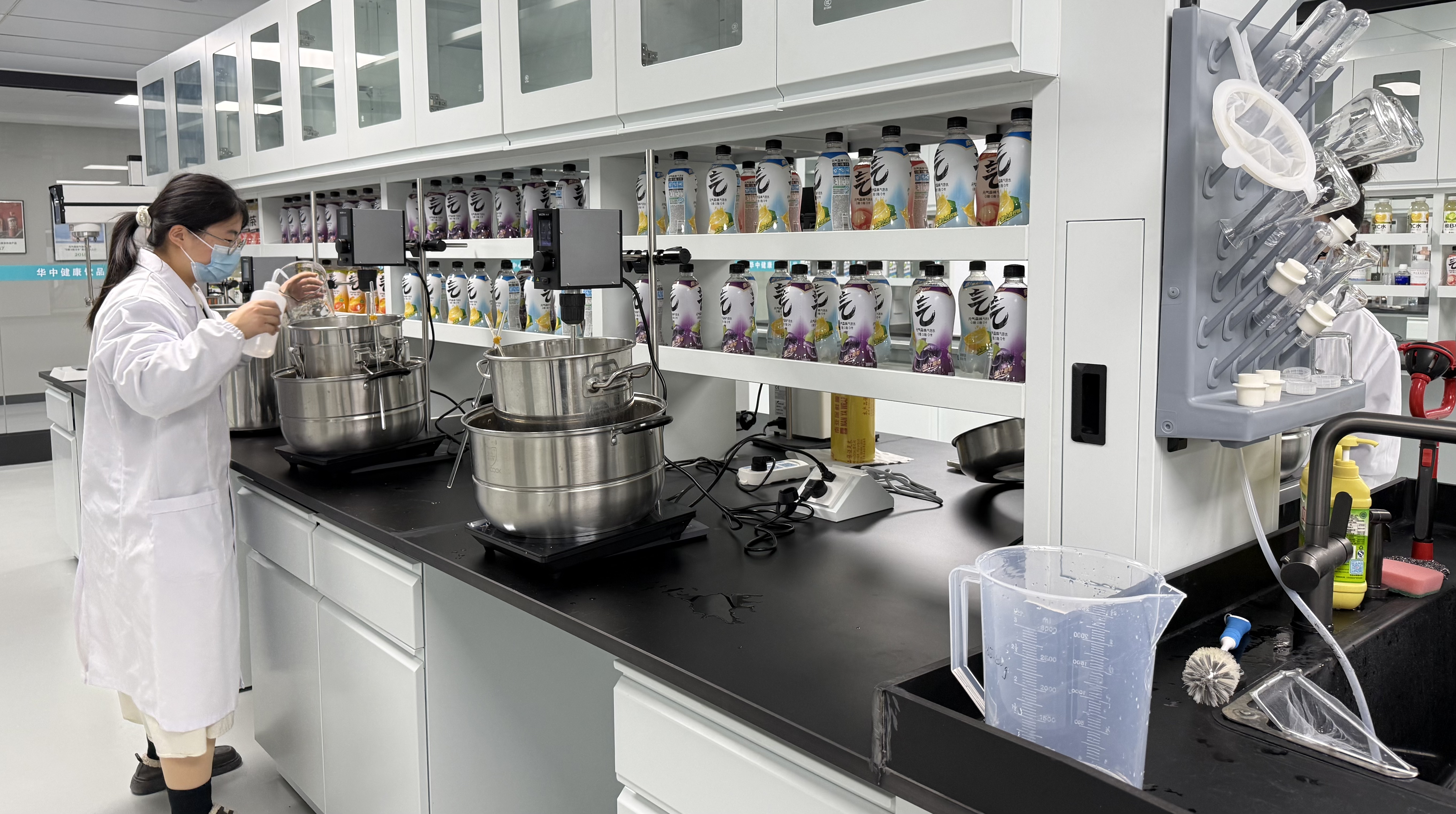 其中,中试工厂配置了可切换11个大类、49个小类饮品的柔性产线,是目前国内可切换品类最全的健康饮品中试线之一;实验基地则配备了高效液相色谱、原子吸收光谱仪等200余台设备,可同时支持100余名研发人员开展实验。