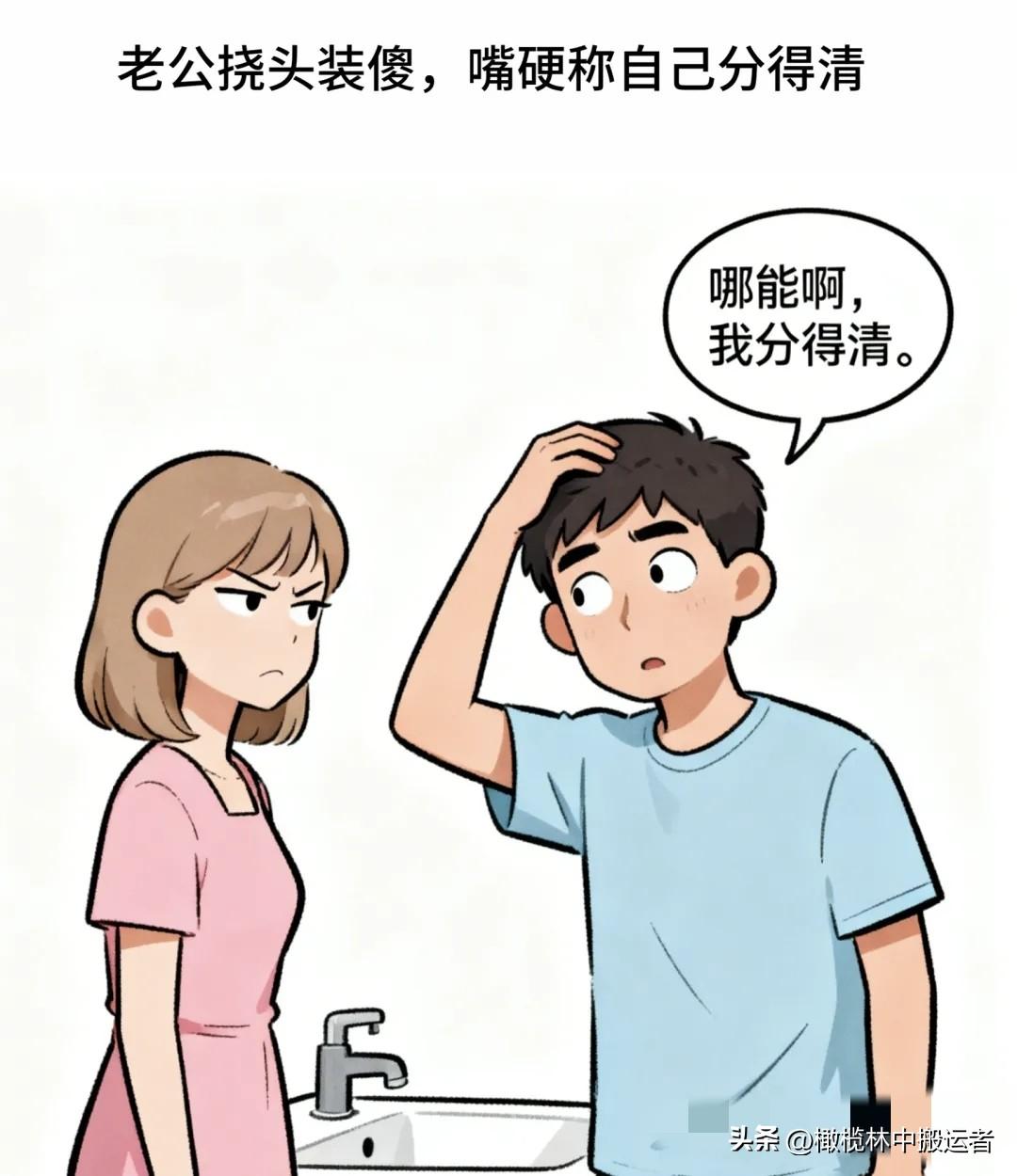 趣味漫画:老婆斜瞟老公:你是不是又把我洗面奶当洗手液用了?老公挠头装傻:哪能啊,我分得清。老婆气笑:分得清?瓶子都快薅秃了!夫妻日常漫画
