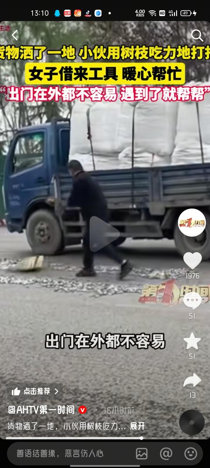 3月30日,邢台沙河市。女子发视频称,回家路上遇到小伙吃力打扫小零件,不知道是什么东西,这么扫不知花费多长时间。于是,她回到村里借几个工具帮他一块清扫,当时就觉得人们出门在外都不容易,遇到谁有难就得帮帮,赠人玫瑰手留余香。