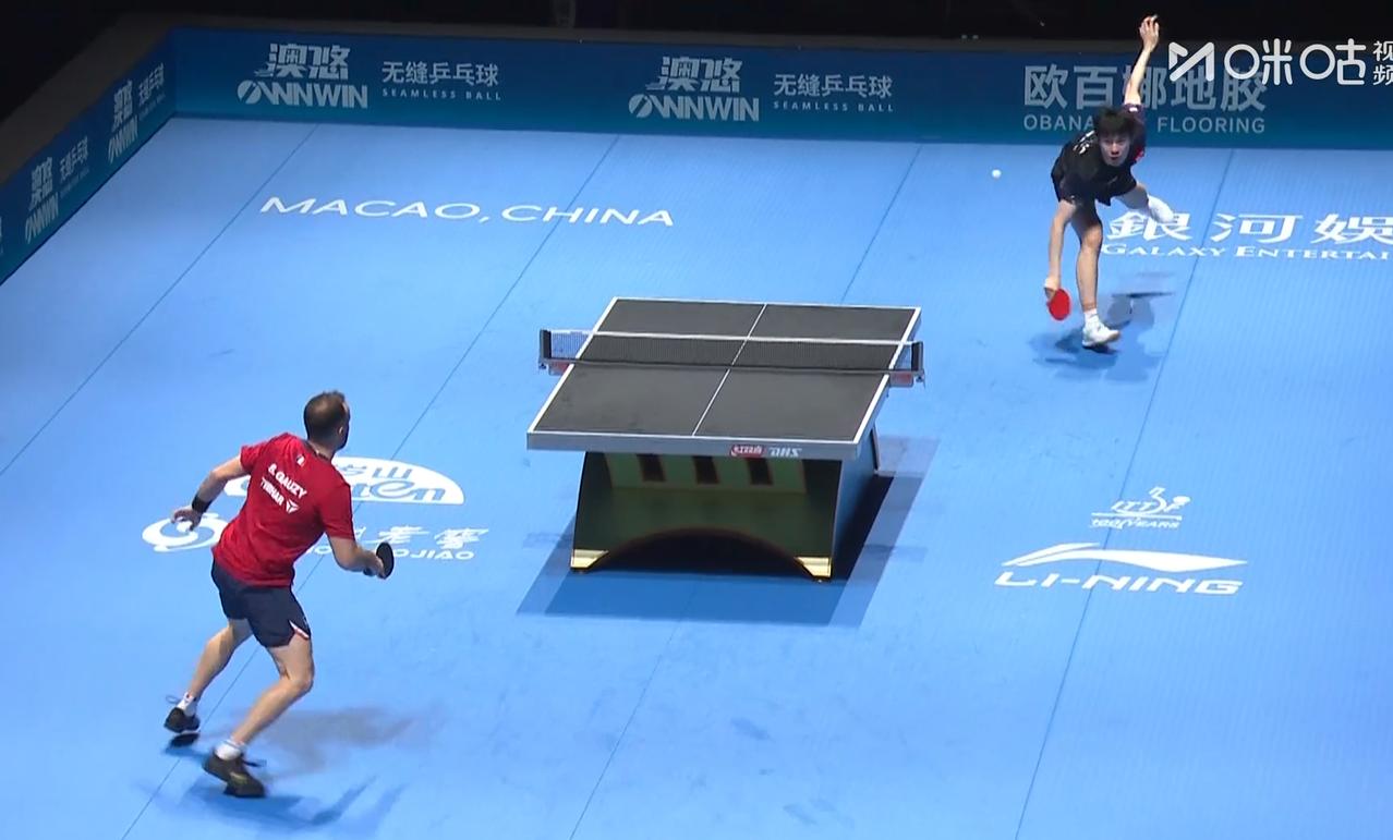 温瑞博和西蒙打的激情燃烧! 这才是真正的乒乓球比赛! 两个人远台对拉太漂亮了, 拼的也很凶。 第三局 温瑞博一个擦网球, 西蒙直接趴到台子上了, 没想到马上西蒙又一个擦网球, 温瑞博又趴在台子上了。 说明两人拼的太凶了。 今天小温的远台对攻绝了, 多次擦网,多次救球, 这比赛比打前三板的好看多了。