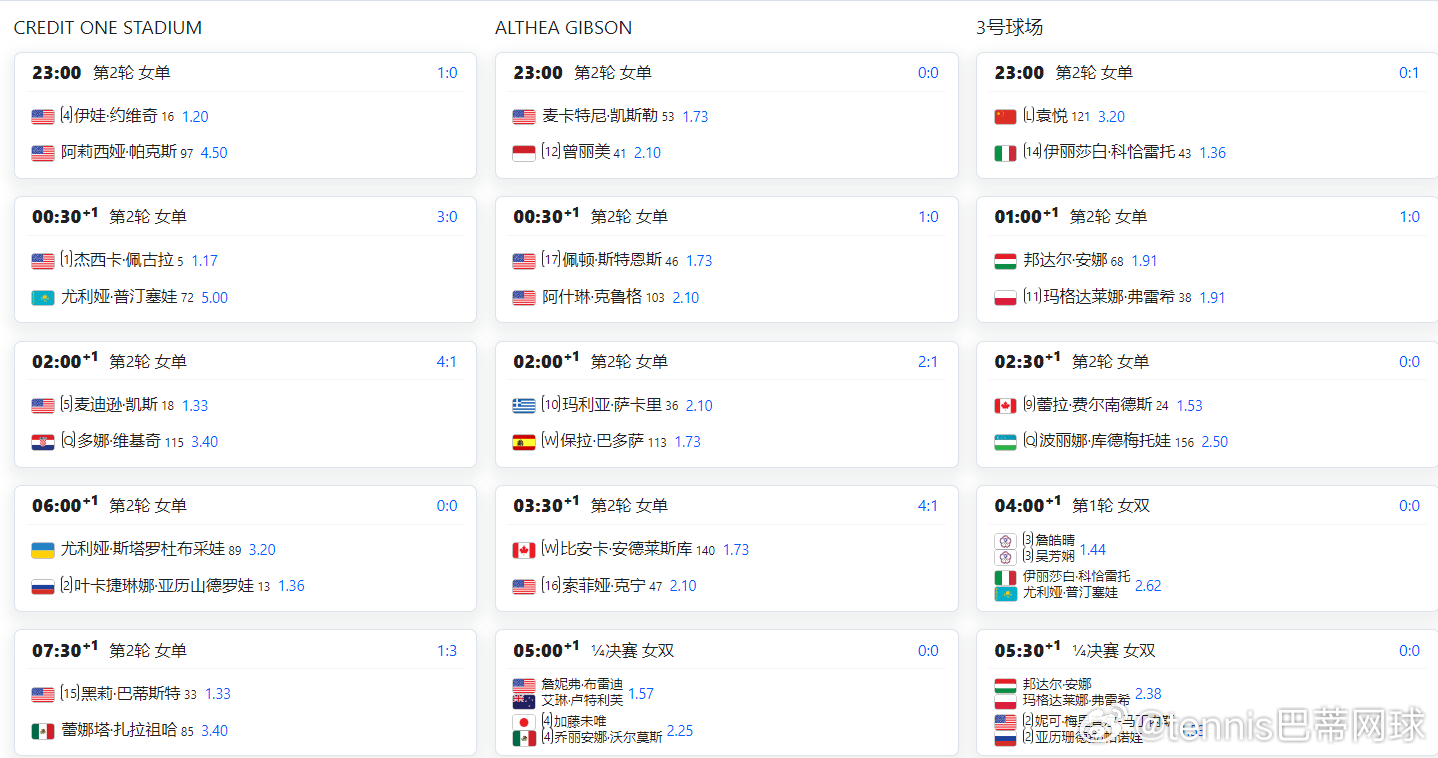 今日赛程 张之臻🇨🇳出战谢尔顿🇺🇸,袁悦🇨🇳激战科恰雷托🇮🇹