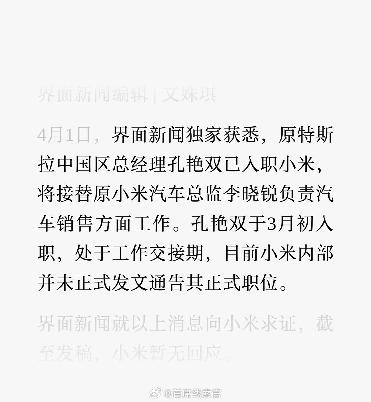 据界面新闻消息,原特斯拉中国区总经理孔艳双已入职小米。