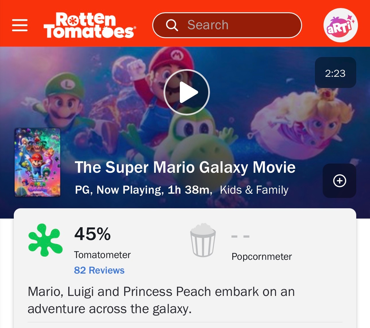 《超级马力欧银河大电影》北美口碑解禁,目前烂番茄新鲜度45%,比第一部低,就看爆米花指数多少了。