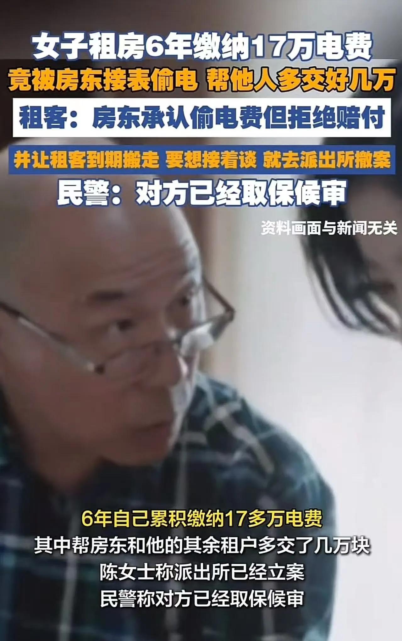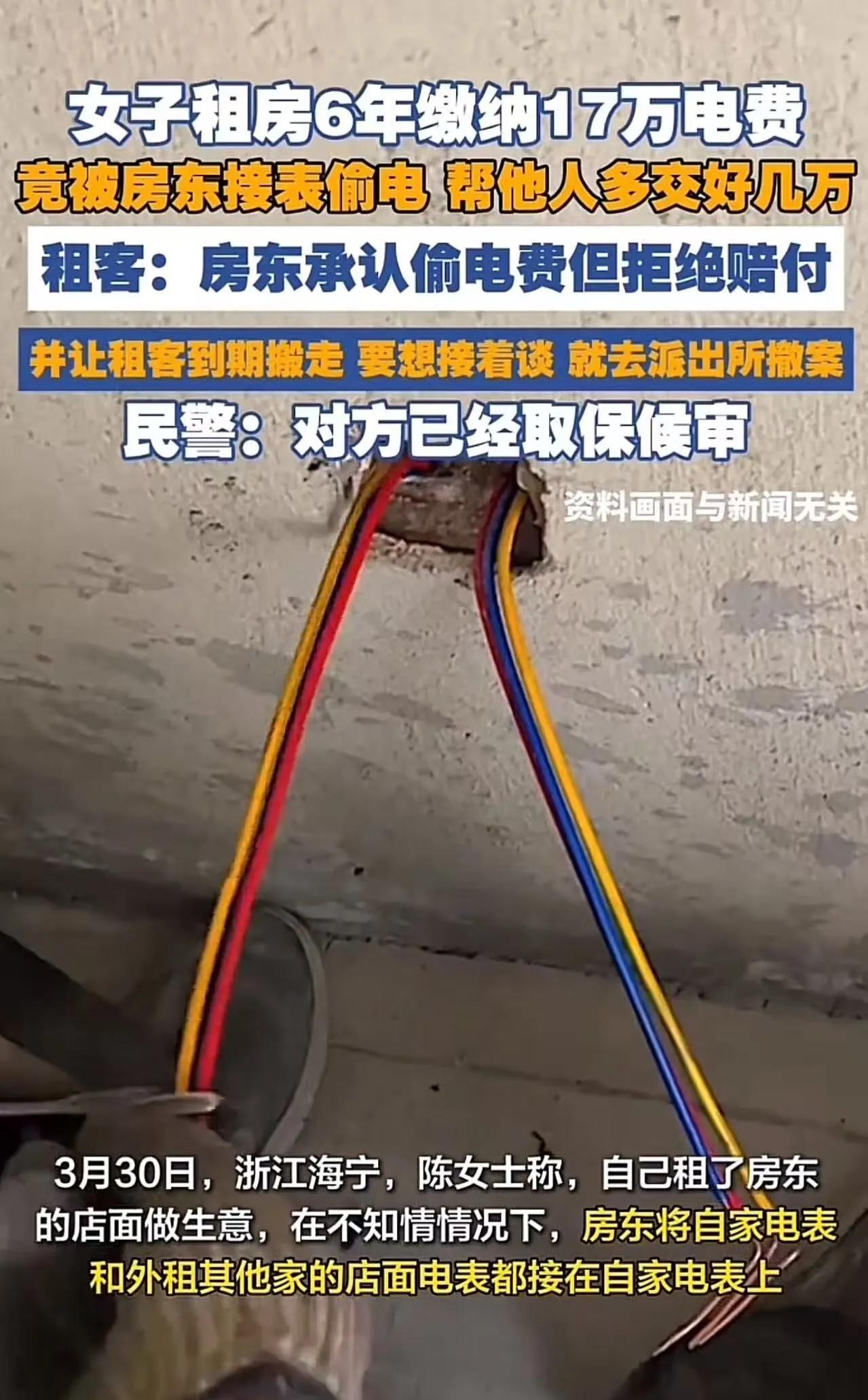 “太无耻了!”女子租房6年交了17万电费,才发现电表被房东动了手脚,多交了好几万!房东承认偷电,却嚣张放话:不撤案就滚蛋 浙江海宁的陈女士,觉得自己这六年像个笑话。 她在当地租了个店面,起早贪黑,勤勤恳恳做生意。六年下来,光电费就交了17万多。她一直以为是自己生意好、用电量大,从来没往别处想。 直到最近,她拿着电费单越看越不对劲——店里所有电器都关了,电表转盘还在不知疲倦地转。那一刻,她觉得自己被嘲笑了。 陈女士咬咬牙,花钱请了个专业电工来查线路。这一查,直接把她气炸了。 一、六年17万电费,原来是在养房东全家 电工一查才发现,房东早就把黑手伸向了陈女士的电表。 不仅房东自己家的生活用电接在陈女士的表上,甚至连另外两家租户的线路,也被偷偷接了过来。也就是说,这六年里,陈女士不仅养着自己的店,还顺带养活了房东一家,外加帮另外两家店买单。 算下来,被偷走的电费足足有几万块。 陈女士气不过,直接报了警。帽子叔叔办事利索,立案、调查,房东面对证据,不得不承认了私接线路窃电的事实。 可接下来的一幕,让陈女士彻底看清了这人的嘴脸。 二、承认偷电,却耍无赖:不撤案就搬走 房东虽然认了偷电,但在赔偿问题上却耍起了无赖。 两手一摊,摆出一副“死猪不怕开水烫”的架势:钱,没有;想接着谈?行,先去派出所把案撤了。 更狠的是,房东还拿租约到期说事儿,直接下了逐客令:“你要是不撤案,合同一到期,立马给我搬出去!” 陈女士坐在店里,欲哭无泪。 这店开了六年,积累的全是老客户,要是搬了,生意得从头再来。加上装修、搬迁的费用,那损失可比几万块电费大多了。房东就是抓住了她“不敢搬、搬不起”的软肋,吃定了她只能忍气吞声。 三、这不是耍赖,这是犯罪 咱们得给这位房东普普法,别以为这是民事纠纷,这可是实打实的刑事雷区。 这不仅仅是欠钱,是盗窃。根据《刑法》第264条,以非法占有为目的,秘密窃取公私财物的,构成盗窃罪。电能也是财物,房东私接线路,偷偷用别人的电,这就是典型的盗窃行为。 几万块的金额,在很多地区已经达到了“数额较大”甚至“数额巨大”的标准,是要判刑的。而且盗窃罪属于公诉案件,不是陈女士说撤就能撤的。房东这种“以撤案换赔偿”的言论,不仅暴露了他毫无悔意,甚至可能涉嫌干扰司法公正。 退一步讲,就算不往刑事上走,单从民事角度看,房东的行为也构成了不当得利。根据《民法典》第九百八十五条,没有法律依据取得不当利益的,受损失的人有权请求返还不当利益。陈女士完全可以起诉房东,要求返还这些年多交的电费。 结语 这事儿看得人火冒三丈。不仅仅是因为那几万块钱,更是因为这房东吃相太难看,把“无赖”两个字演绎到了极致。 他以为抓住了租客“怕麻烦、怕搬迁”的心理,就能把黑的说成白的,把偷来的钱揣进腰包。他以为只要脸皮够厚,法律就奈何不了他。 对于这种房东,我们只想送他一句话:别把无知当个性,别把违法当生意。你省下的那点电费,最后都会变成你踩缝纫机时的眼泪。 同时,也给所有租客提个醒:签合同之前,水电表最好找人查一遍。别等到交了几年冤枉钱,才发现自己一直在给别人买单。 你怎么看? 如果你是陈女士,你会选择忍气吞声继续租下去,还是宁愿损失客户、赔上装修费也要搬走?你有没有遇到过类似的“无赖房东”?欢迎在评论区聊聊你的经历。