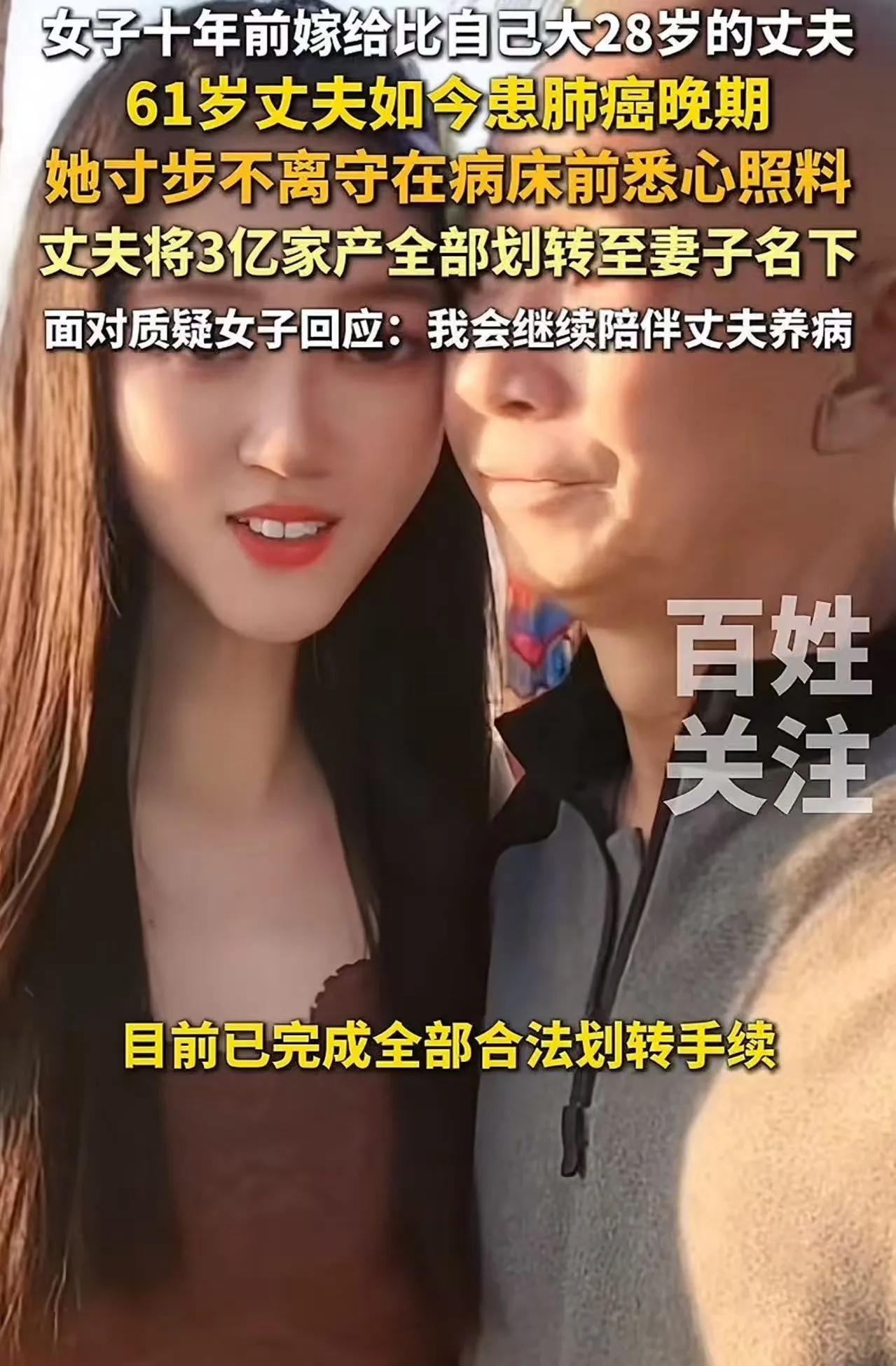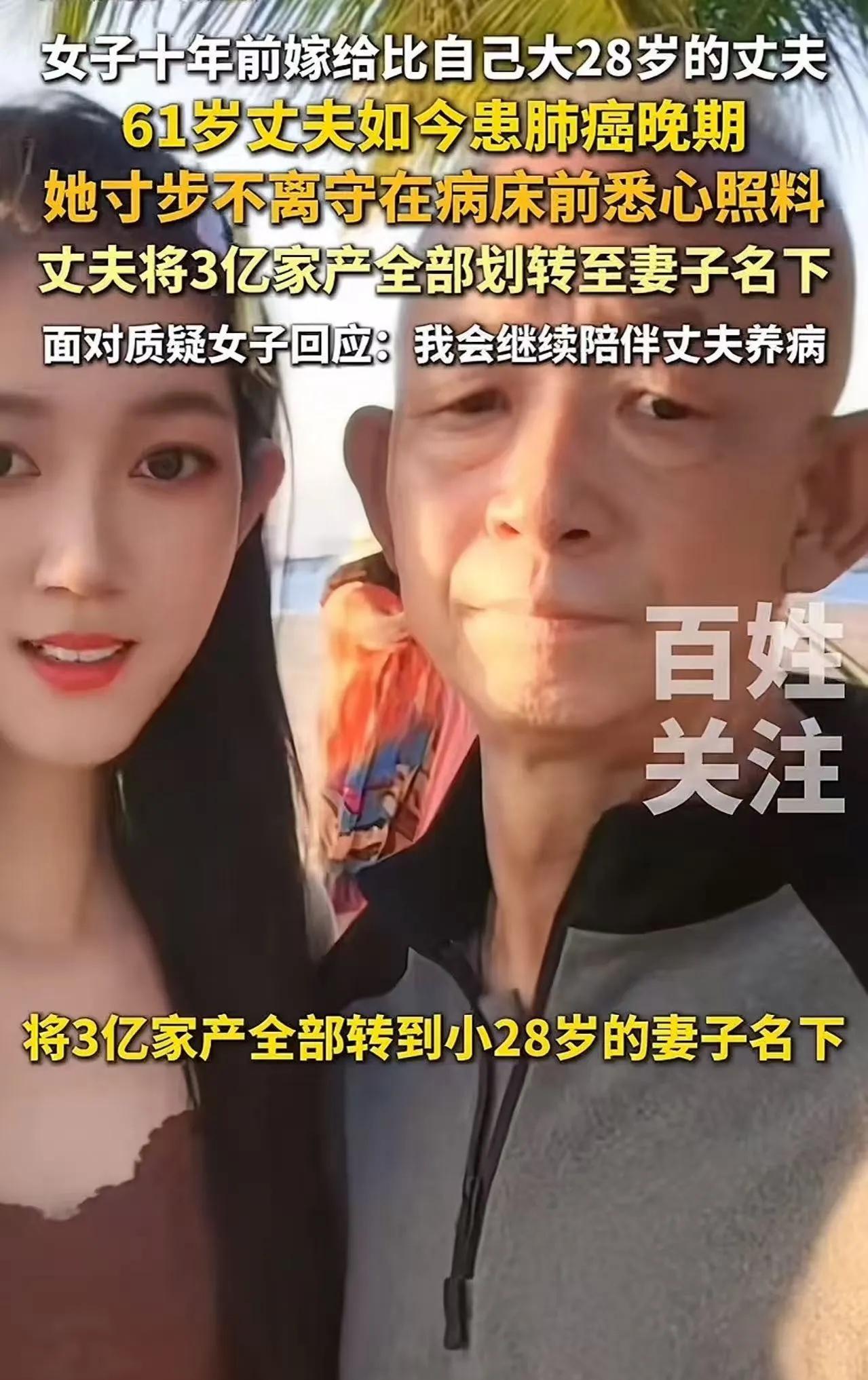 “我生病十年,你们在哪儿?”61岁男子肺癌晚期,将3亿家产全转给小28岁妻子,前妻子女怒骂“心机女”,被父亲一句话怼得哑口无言 61岁的侯先生躺在病床上,脸色蜡黄,呼吸急促。肺癌晚期,五次化疗,像五把钝刀,一点点割尽了他最后的生命力。 床边,33岁的莉媛正用棉签蘸着温水,小心翼翼地润湿他干裂的嘴唇。这个比他小28岁的女人,已经这样守了他十年。 十年前,她不顾家人反对,嫁给了这个意气风发的企业家。外界说她是“图钱”,说她是“攀高枝”,她从不辩解。十年间,他们有了一个儿子,日子过得平静而安稳。 直到那张诊断书,像一道惊雷,劈碎了所有安宁。 一、十年病床前,她用青春换来了什么 从确诊那天起,莉媛就辞去工作,日夜守在床边。喂饭、擦身、换药、安抚情绪,这些事她一做就是十年。 化疗的副作用让侯先生呕吐、脱发、疼痛难忍,她就一遍遍给他按摩,轻声细语地安慰。半夜发烧,是她第一个发现;喝水呛了,是她一遍遍擦干净。 而侯先生与前妻所生的一对子女呢?工作忙、家庭忙,总觉得父亲有保姆、有现任妻子,不需要他们。十年里,他们来病房的次数,一只手数得过来。 “侯先生,这是财产赠与协议的最终文件,您确认要全部划转至莉媛女士名下吗?”律师轻声询问。 侯先生费力地抬起手,在文件上按下了自己的指印。 3.02亿,房产、股权、存款,全部归莉媛所有。 二、子女冲进病房,被父亲一句话堵死 手续办完的第二天,侯先生与前妻所生的一对子女冲进了病房。 “爸!你怎么能把钱都给她!她就是个心机女!她图的就是你的钱!” “我们才是你的亲骨肉!你一分钱都不给我们,以后我们怎么办?” 莉媛低着头,一言不发。她不想争,也不想辩。 侯先生躺在病床上,看着眼前这两个几乎陌生的面孔,突然笑了,笑声里带着无尽的悲凉。 “我生病十年,你们在哪儿?” 他声音不大,却像一记重锤,狠狠砸在子女的心上。 “我化疗疼得睡不着的时候,你们在哪儿?我半夜发烧,是谁守着我?我连喝水都要人喂的时候,你们在哪儿?” 子女们张了张嘴,却发不出声音。他们确实很少来。 “这钱,是她应得的。”侯先生闭上眼,不再看他们,“她陪我走过了最难的十年,我走了以后,她和孩子,总得活下去。” 病房里一片死寂。 面对外界“贪财”“心机”的指责,莉媛只是平静地说:“我从来没主动要过一分钱。照顾他,是我作为妻子的本分。我只想陪他走完最后一程,把我们的孩子养大。” 三、法律怎么看:自己的钱,想给谁就给谁 这事儿一出来,网上彻底吵翻了。有人说莉媛是“赢家”,有人说前妻子女“活该”,也有人替子女抱不平:“再怎么说也是亲生的,一分钱不给,太狠了吧?” 咱们先别急着站队,看看法律怎么说。 根据《民法典》的相关规定,个人对其合法财产享有完全的处分权。侯先生名下的3亿资产,是他自己的合法财产,他想赠与谁、怎么赠与,完全是他个人的自由。 很多人误以为子女有“法定继承权”,就觉得父母的钱天生就该留给子女。这是个误区。继承权是在被继承人去世后才产生的,而赠与是生前的财产处置行为。生前把钱给了别人,子女是无权干涉的。 换句话说,侯先生的做法,法律上没有任何问题。 那前妻子女能不能以“缺乏劳动能力”或者“没有生活来源”为由,要求保留必要份额呢?本案中没有相关信息显示他们符合这些条件。更何况,他们是成年人,有工作、有家庭,法律上并不属于“必须保留遗产份额”的法定继承人。 所以,侯先生的3亿赠与,合法、有效,谁也拿不走。 结语 这事儿最讽刺的,不是3亿归谁,而是人们对“付出”的衡量标准。 莉媛用十年青春,换来了3亿。有人说她“心机”,可如果“心机”是十年如一日守在病床前,是喂饭擦身、不离不弃,那这种“心机”,谁不想有? 前妻子女指责她“贪财”,可他们自己呢?父亲病重十年,他们出现过几次?陪伴过几天?现在父亲把财产给了真正照顾他的人,他们却跳出来谈“血缘”、谈“公平”? 血缘是天然的纽带,但不是索取的筹码。你不能在父亲健康时缺席,在他病重时消失,却在他临终前,理直气壮地要求分财产。 侯先生的决定,不是偏心,是清醒。他知道,谁在他最脆弱时守着他,谁才是真正值得托付的人。 别再用“贪财”去污名化一个女人的坚守,也别再用“血缘”去绑架一份从未付出的亲情。 真正的公平,不是平分财产,而是让付出的人得到回报,让缺席的人学会反思。 莉媛拿的3亿,不是“抢来的”,是“熬出来的”。而有些子女,输的不是钱,是人心。 你怎么看? 如果你是侯先生,你会把财产留给守了你十年的妻子,还是留给十年不露面的亲生子女?你觉得“血缘”和“陪伴”,哪个更值得被回报?欢迎在评论区聊聊你的看法。 来源:综合多家媒体报道