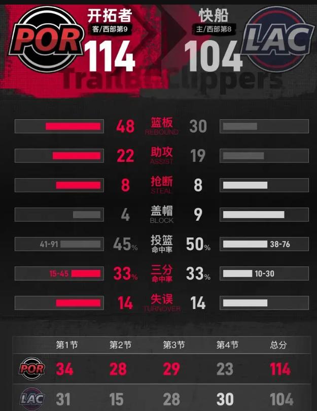 五连胜的快船,主场让残阵开拓者按地上摩擦?您听这像不像愚人节玩笑?可偏偏今儿个——2026年4月1号——Intuit Dome里,这事儿真发生了。 说加兰。26岁,骑士过来的"宝贝疙瘩",这场呢?17中7,5个失误,正负值惨得没法看。亨德森、卡马拉这俩年轻后生(一个22岁、一个24岁)轮流"点菜",挡拆一打一个准。这叫控卫?这叫"移动提款机"!泰伦卢赛前还夸"喜欢这搭档",喜欢啥?喜欢给伦纳德上折返跑训练课? 小卡34岁了,52场20+的纪录夜里这场还在续,可您看他拿球,阿夫迪亚(24岁)、克林根(22岁)全扑上来夹成肉饼。23分8板,数据还在,心气儿快磨没了。篮板48比30,前场板让人家抢18个,洛佩斯37岁,科林斯也不是护框的,禁区打成筛子,卡位都懒得卡。 说白了,加兰不是不行,是今儿打不了高端局。快船的魂是伦纳德,可一根竹竿撑不起整间屋子。领先0.5个胜场,最后还得再打一次波特兰。这场掉坑里不丢人,要是爬不出来——那才叫真完了。
