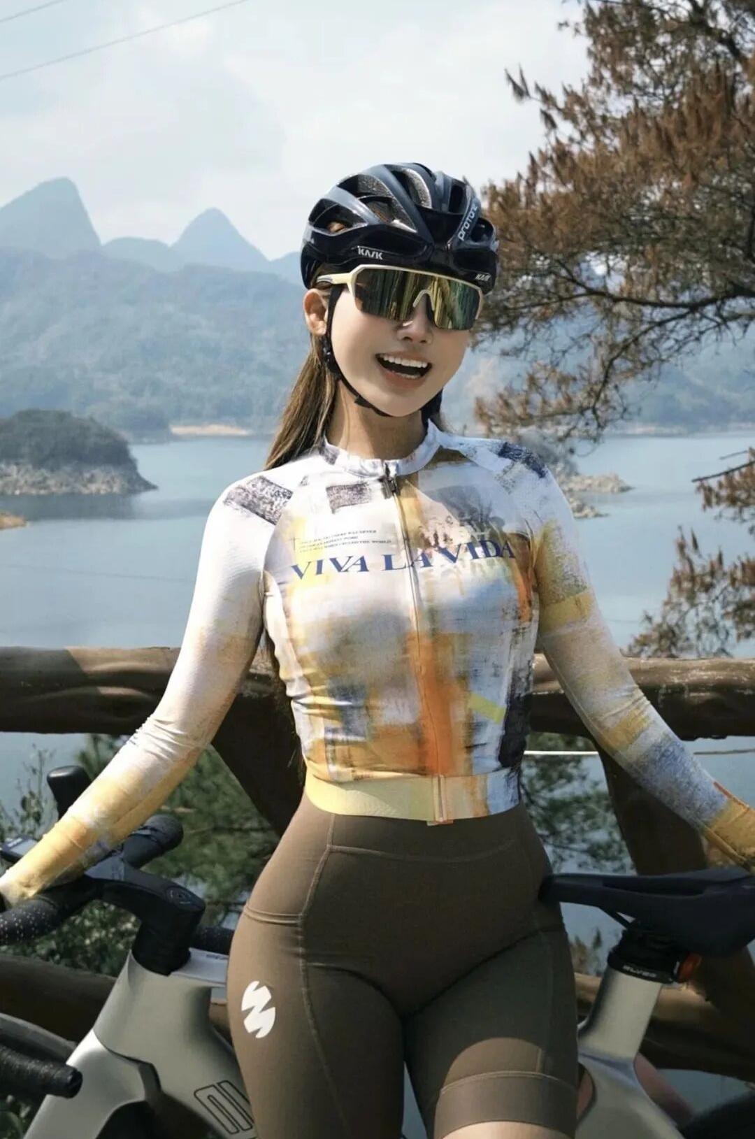 爱生活,爱自己,爱运动》骑行少女,动感十足!🚴♀️💪骑行服真棒充分展示骑行